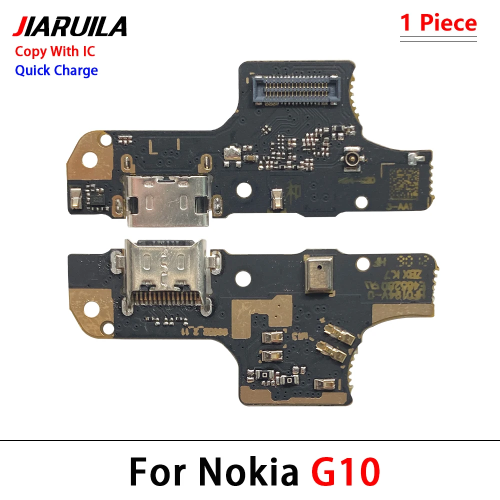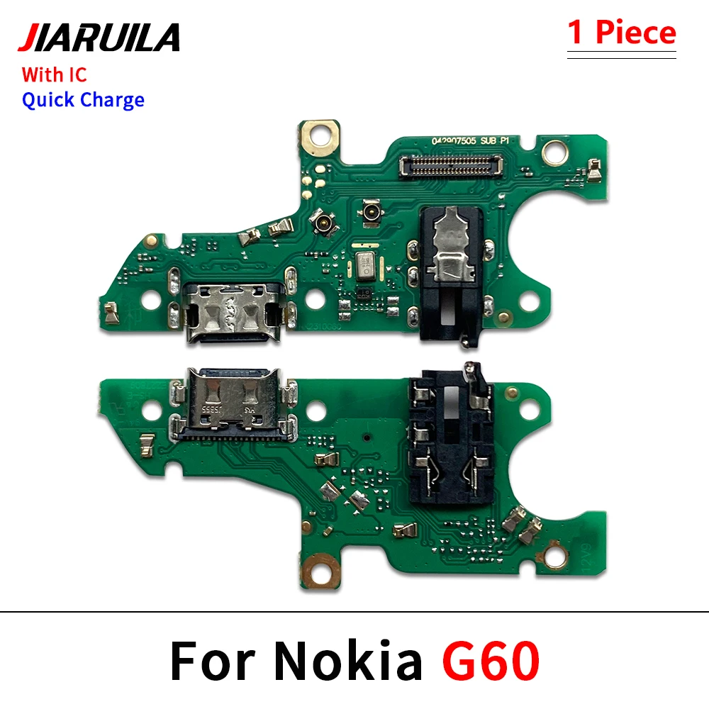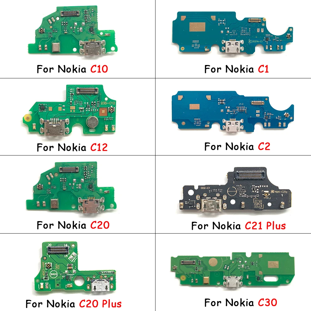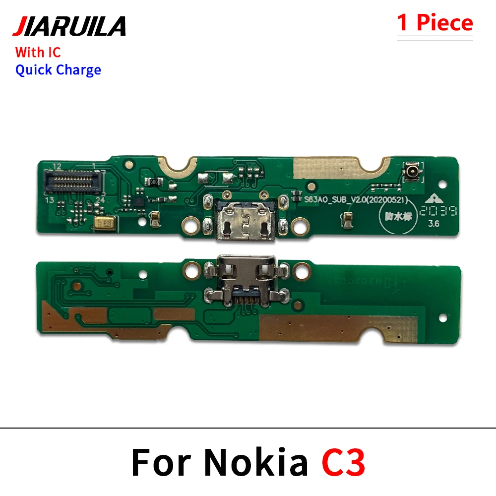 The USB Charger Charging Port Flex Cable Connector Microphone Board is designed for a range of Nokia models including G50, G21, G20, G11, G10, C30, C20, C12, C10, C2, C1, C21 Plus, and C3. Featuring a robust rectangular design available in vibrant green, deep blue, and glossy black, this board includes a metallic USB port and various electronic components for efficient functionality. Clearly labeled “With IC” for easy identification, it serves as a high-quality replacement for broken or unusable charging parts, ensuring your device operates smoothly.