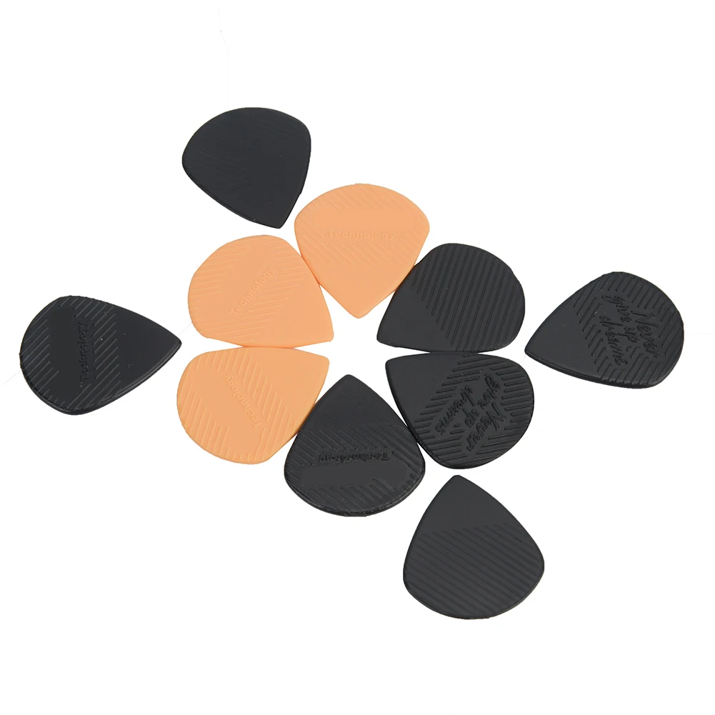Experience superior control and comfort with this set of ten high-quality guitar picks, specially designed for enthusiasts. Crafted from durable plastic, these picks feature a fine, smooth surface complemented by textured grip areas with diagonal lines for enhanced handling. The vibrant orange picks embossed with “Technology” and the sleek black picks, some displaying “FREEDOM” in cursive, add visual flair to your playing. Available in different thicknesses—1.2mm for strumming and 0.96mm for precise single notes—these picks are versatile and ergonomic. Whether you're performing chords or delicate melodies, this set helps you achieve a clearer, more pleasant tone with every strum. Suitable for various folk guitars, these picks elevate your musical experience.