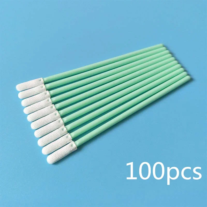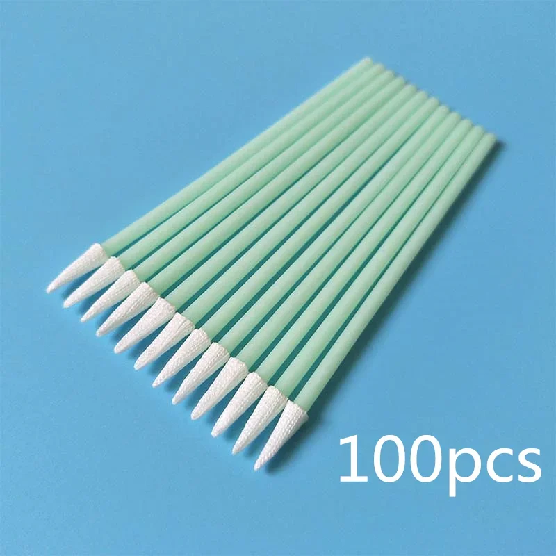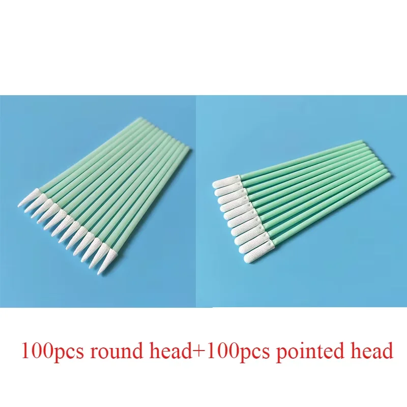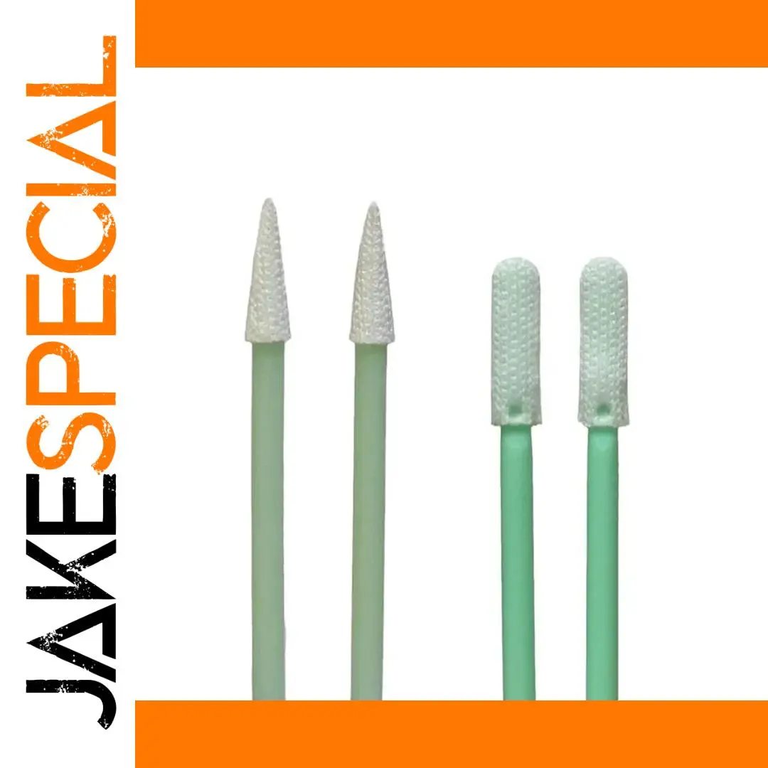 Experience precise and gentle cleaning with this set of 100 non-woven cotton cleanroom polyester swabs designed for dust removal, ideal for COF cable and phone repair. Each set includes 50 pointed-tip swabs with white, textured, dimpled tips for hard-to-reach areas, and 50 round-head swabs with similar textured tips for surface wiping and general cleaning. The slender, cylindrical handles are in a soft mint green, offering comfort and control during delicate tasks. Made from safe, chemical-free materials, these sterile, professional-grade swabs ensure optimal performance in sensitive cleaning environments, providing reliability and efficiency for maintaining your electronics and delicate components.