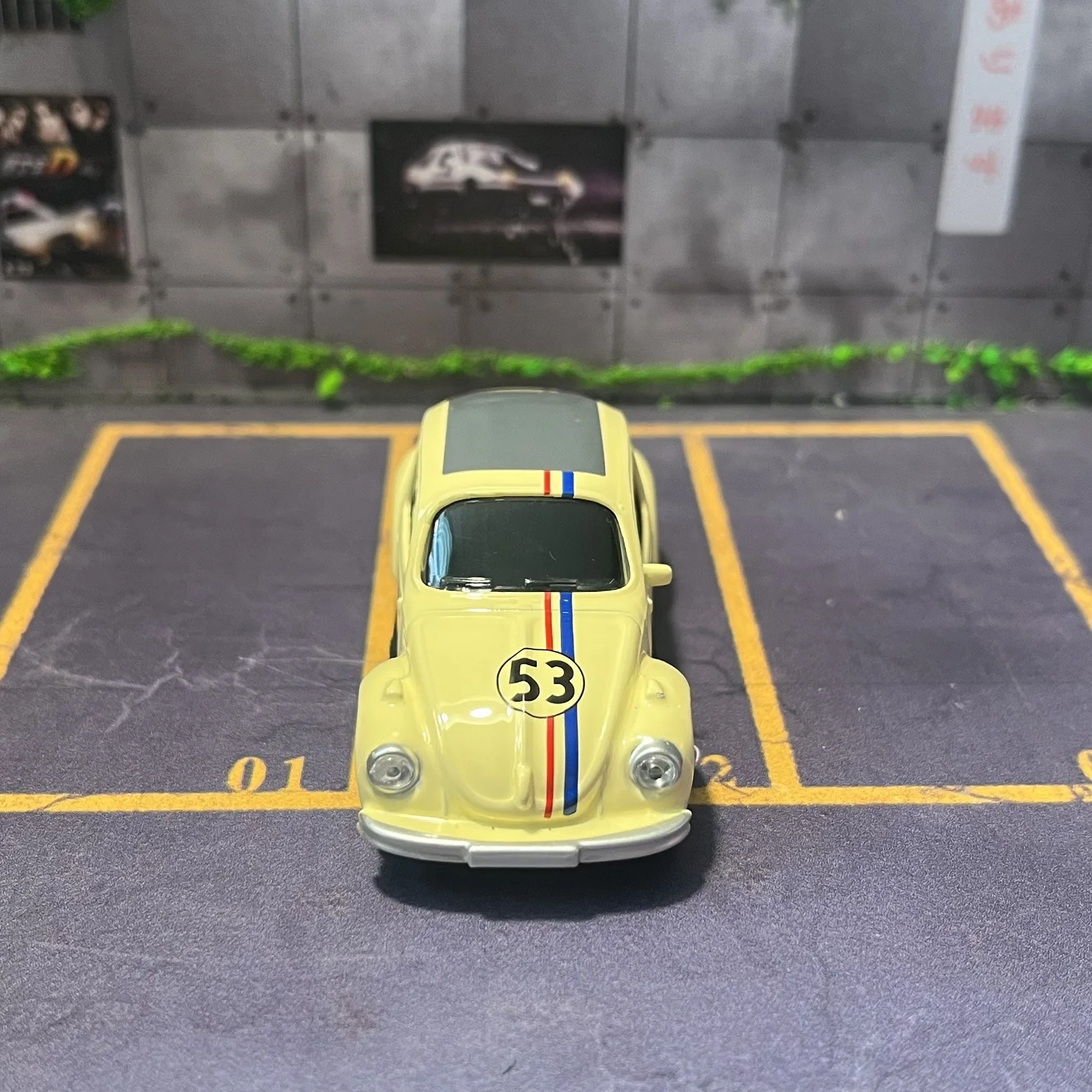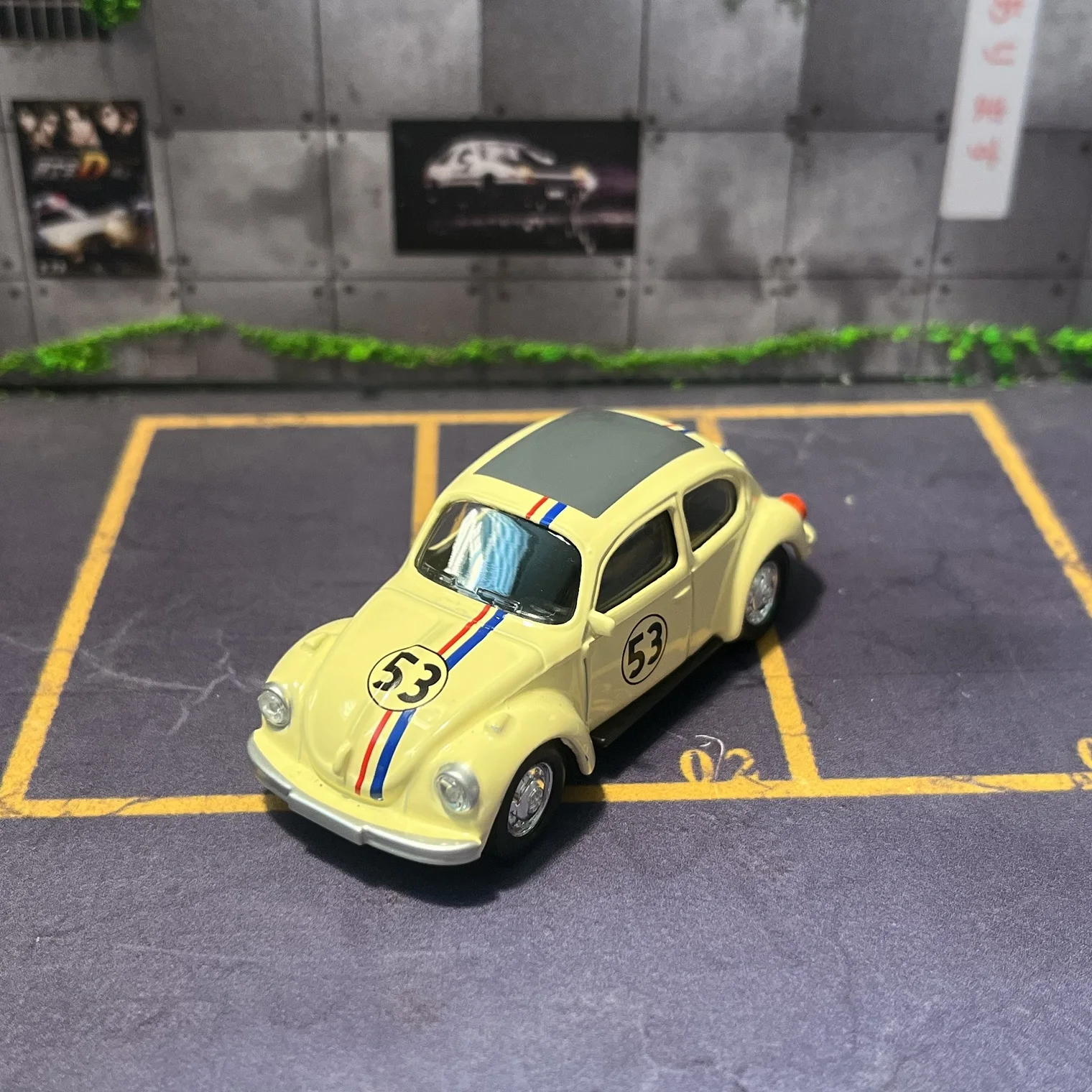 The Norev 1/64 Alloy Diecast Car Model captures the enchanting essence of the classic Beetle. Drenched in a soft yellow hue, this collectible model features a contrasting gray roof that perfectly complements its nostalgic design. The eye-catching number “53” is displayed in a circular design on both front doors, along with vibrant racing stripes in blue, red, and white that run down the car's hood, creating a sporty appearance. With its chrome-like wheels and sturdy metal construction, this model is designed for display and showcases your love for automotive history. Add this stunning piece to your collection and let it spark joy in your space.