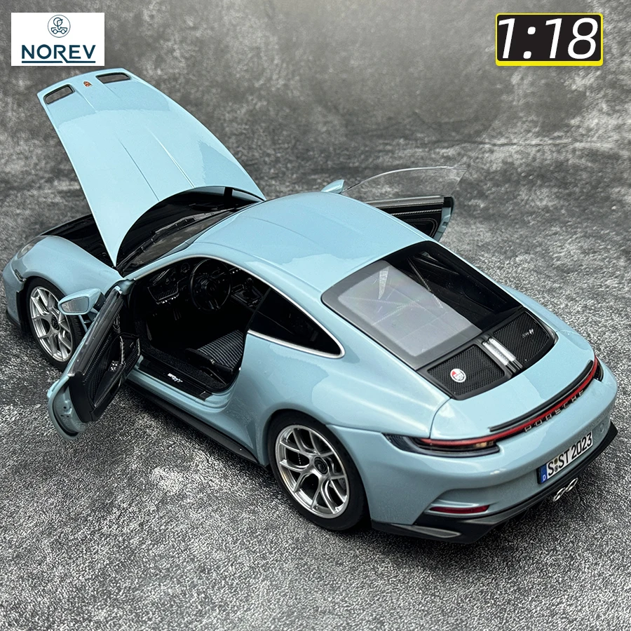 - This 1:18 scale die-cast model replicates the Porsche 911 S/T 2023 with a high-quality metal body, detailed plastic components, and rubber tires for a realistic look and durable feel.