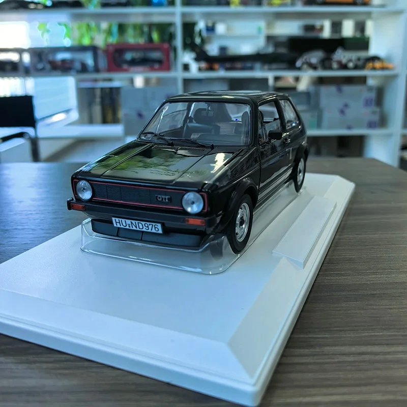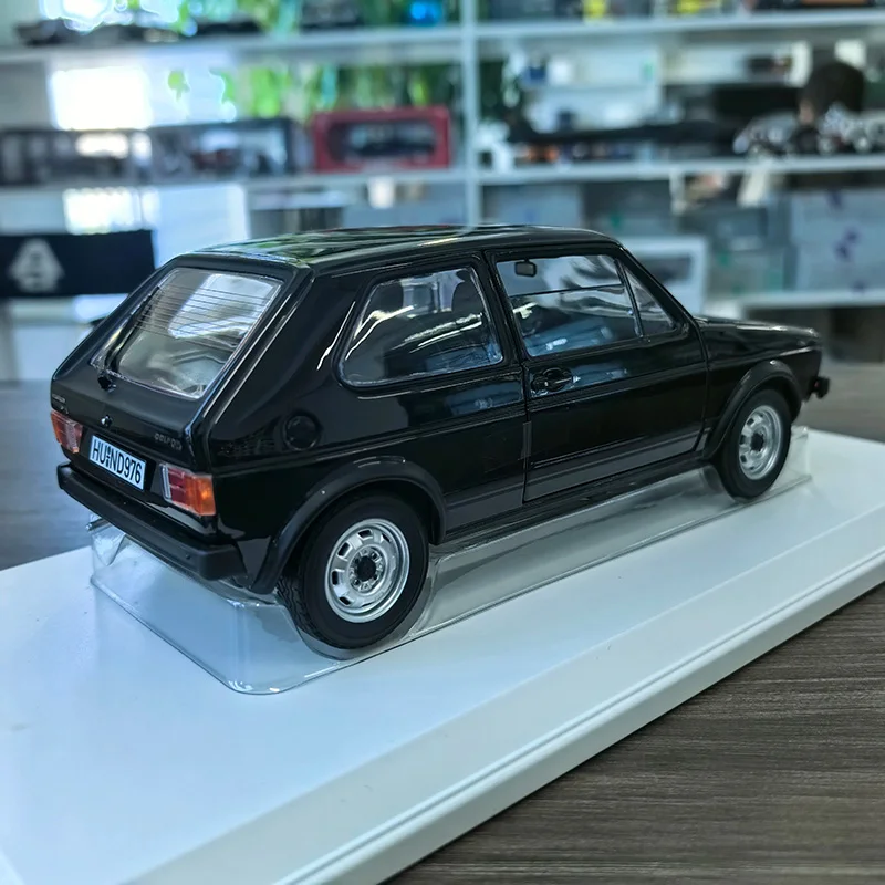 Experience the timeless elegance of this 1:18 scale alloy GTI 1976 collectible model, skillfully crafted from metal with a sleek black finish (color code 188487). Featuring precise details including side mirrors, door handles, and front and rear lights, this unisex, non-electric figurine is perfect for collectors aged 14 and above. Its classic hatchback silhouette, smooth contours, and polished exterior perfectly capture vintage charm and automotive craftsmanship. Protected within a clear display case, this finished model creates an ideal showcase piece, allowing you to relive the iconic design of this vintage GTI. Enhance your collection with this refined, meticulously detailed miniature today.