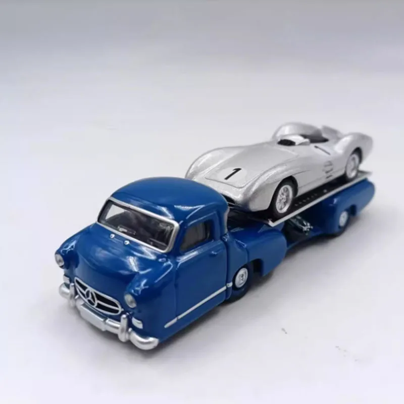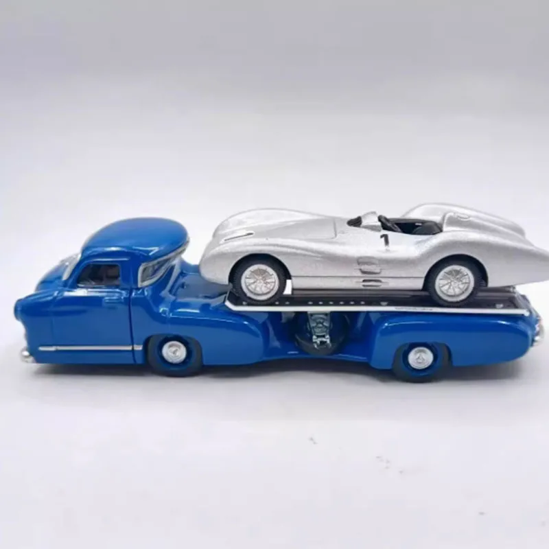 Transform your collection with this eye-catching NOREV 1:64 Scale Trailer Transporter. Featuring a brilliant blue metallic finish, this model captures the essence of a classic truck design beautifully. The meticulously crafted detailing, from the streamlined front with its rounded hood and prominent grille to the intricate headlights and windshield, offers a lifelike representation that every enthusiast will appreciate. Accompanying the trailer is a sleek, silver racing car boasting a polished exterior and detailed interior, making this set perfect for static display or as a thoughtful gift. Elevate your enjoyment and satisfaction with this stunning collector’s item that invites you to indulge in your passion.