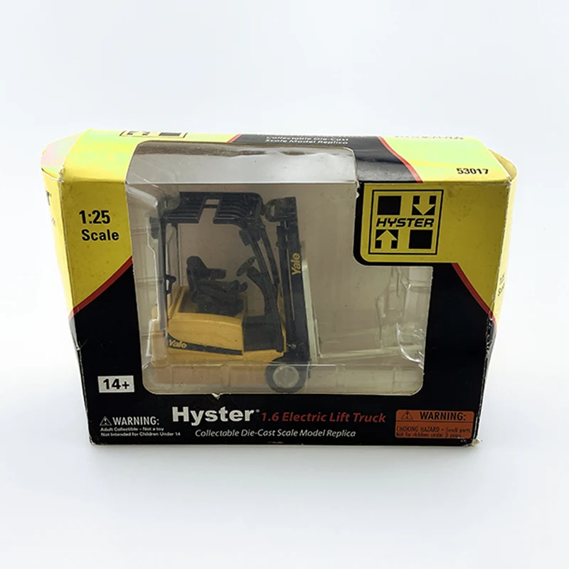 Imagine adding a striking piece to your collection with this highly detailed yellow forklift model. Crafted from durable alloy and ABS plastic, this 1:25 scale replica captures the essence of the original Hyster engineering forklift. The glossy yellow finish commands attention, while the contrasting black accents on the seat, canopy, and wheels enhance realism. The lifting mechanism features crisp white forks extending forward, with parallel safety rails for an authentic industrial look. With precision engineering and sleek design, it’s perfect for display on desks, shelves, or showcase cases. Designed for adult collectors, this model embodies craftsmanship and attention to detail, offering a sophisticated and realistic miniature of heavy machinery that fans and collectors will truly appreciate.