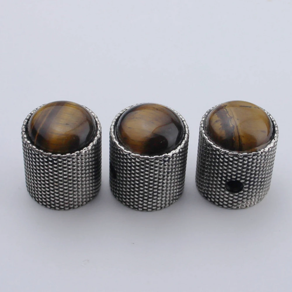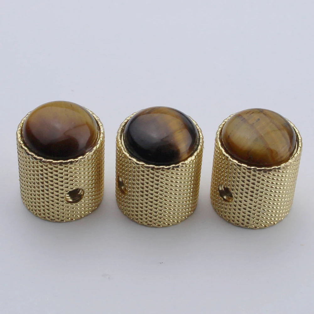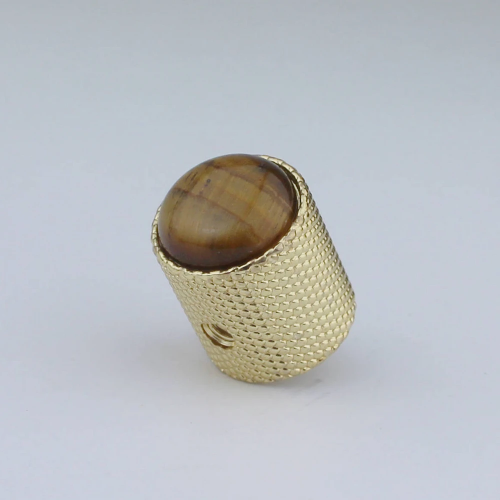 - The knob is available in three stylish finishes: shiny gold with a crosshatch pattern, matte black with an amber cap, or polished chrome with an amber top, to suit any guitar style or tone.