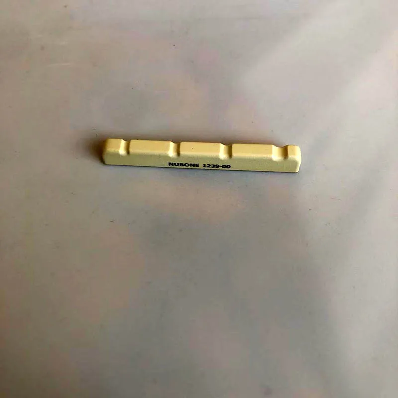 Enhance your jazz-style 4-string electric bass guitar with this high-quality Nubone 1239-00 Nut. Crafted from the proprietary NuBone material, it offers a lightweight yet rigid structure that ensures optimal vibration transfer for richer tone and increased resonance. Its carefully engineered design provides a balanced output with crisp highs and a full, open low-end, elevating your playing experience. The neutral white color complements any bass guitar style, while the precision manufacturing under high heat and pressure guarantees durability, perfect tolerances, and consistent tonal performance. Installing this nut can dramatically improve your instrument’s volume, harmonic content, and tonal clarity. Whether you're a professional musician or a passionate enthusiast, this Nubone nut unlocks your bass's full potential, making every note resonate with fullness and brilliance.