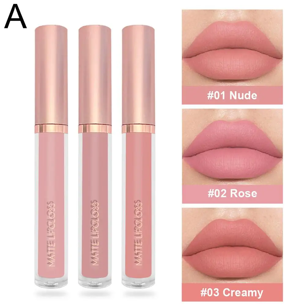 Nude Lip Gloss Set with 3 Long-Lasting Shades