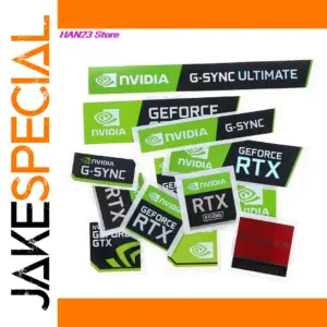 Transform your gaming or work setup with this sleek collection of NVIDIA GeForce stickers. Designed for laptops and desktops, these five high-quality rectangular stickers instantly add a modern, energetic touch to your device. Featuring bold logos like G-SYNC, GeForce RTX, and Radeon Graphics, the stickers showcase a striking color palette of white, black, silver, and vivid green, with a vibrant red Radeon contrast. Their sharp, clean edges and casual overlapping layout reflect a dynamic digital style, perfect for enthusiasts seeking to personalize their machines. Easy to apply and remove, these stickers blend visual flair with technical branding, allowing you to showcase your passion for high-performance graphics. Elevate your device’s aesthetic effortlessly and enjoy a unique, customized look that speaks to your style.