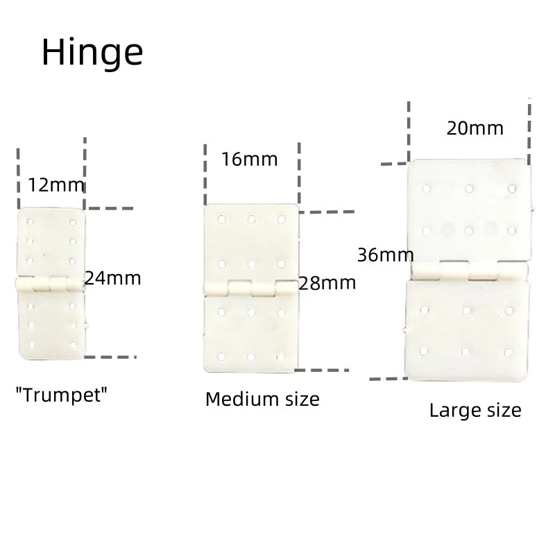 Enhance your RC airplane projects with these high-quality white nylon hinges available in three sizes: 12x24x1mm, 16x28x1mm, and 20x36x1mm, with a possible deviation of 1-3mm. Designed for fixed-wing aircraft and model assembly, these durable hinges feature a minimalist rectangular shape with rounded edges and evenly spaced circular holes for secure attachment. They support smooth pivoting via a central hinge mechanism, ensuring reliable performance. Suitable for remote control vehicle upgrades, connectors, and accessories, each set includes 20 pieces, making them perfect for hobbyists seeking precision, durability, and seamless integration into their RC aircraft builds.