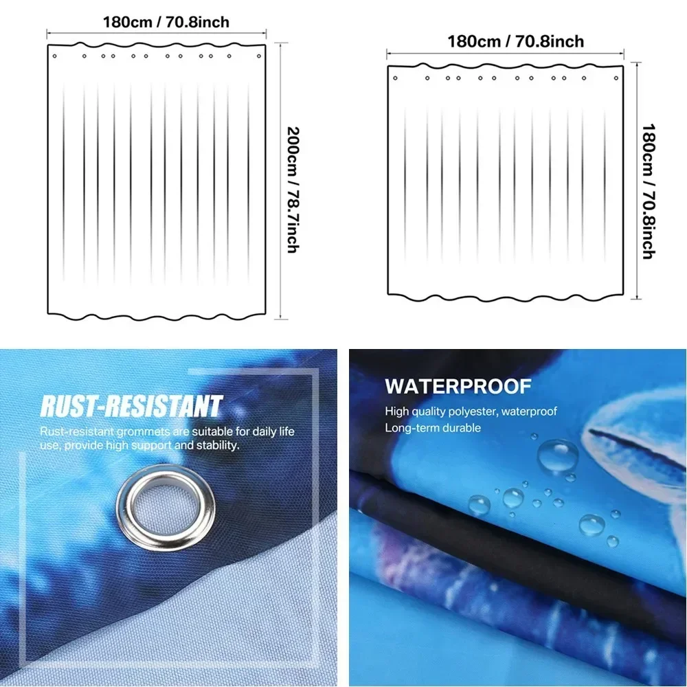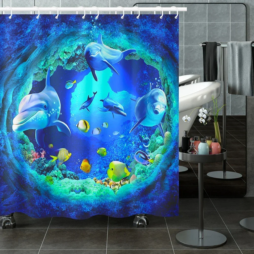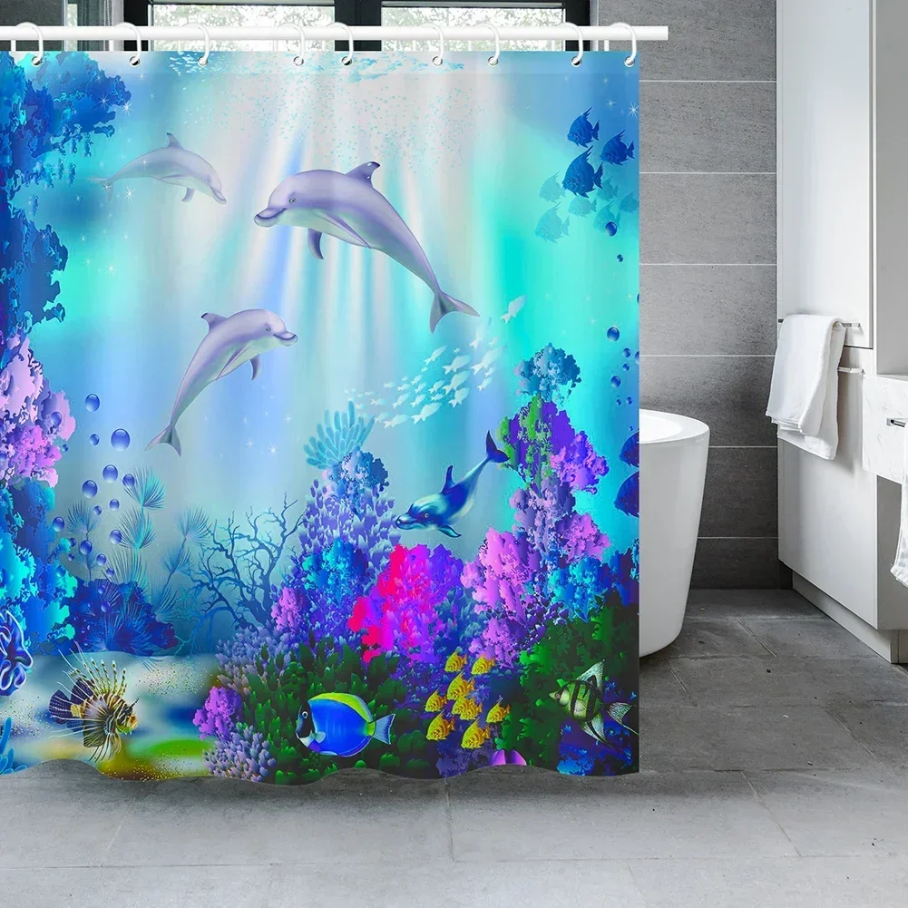 Imagine stepping into a vibrant aquatic world every time you shower. This this Ocean Underwater World Shower Curtain features a stunning 3D digital print of cheerful dolphins swimming among colorful coral reefs and diverse marine life. Crafted from 100% woven polyester with a waterproof coating on the back, it ensures water beads up and dries quickly, keeping your bathroom floor dry and safe. Its lively design, with bright hues of orange, yellow, purple, pink, and green, adds cheerful vibrancy while creating a relaxing underwater ambiance. Available in two sizes, 180x180cm and 180x200cm, it fits various bathroom spaces perfectly. Its reinforced button holes and durable top hem promise long-lasting use, blending functionality with an engaging marine aesthetic.