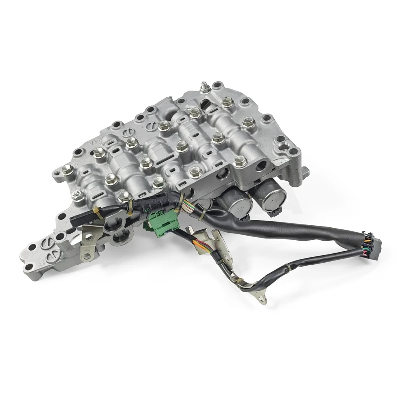 Experience seamless transmission performance with this OEM Nissan CVT8 Valve Body with Solenoids. Crafted from durable aluminum with a smooth, industrial finish, it offers precise machining of channels, ports, and mounting points for optimal fluid regulation. The black rectangular solenoids with matte surfaces are connected with bundled wires inside a protective sleeve, ensuring a clean and dependable electrical connection. Brass and copper fittings, threaded ports, sensors, and mounting holes enhance hydraulic pressure control, making installation straightforward. Designed specifically for Nissan and Infiniti vehicles like Murano, Pathfinder, Altima, JX35, QX60, and FX, this high-quality remanufactured component guarantees long-lasting, reliable operation of your CVT8 system. Restore the hydraulic performance and ensure your vehicle’s transmission runs smoothly again.