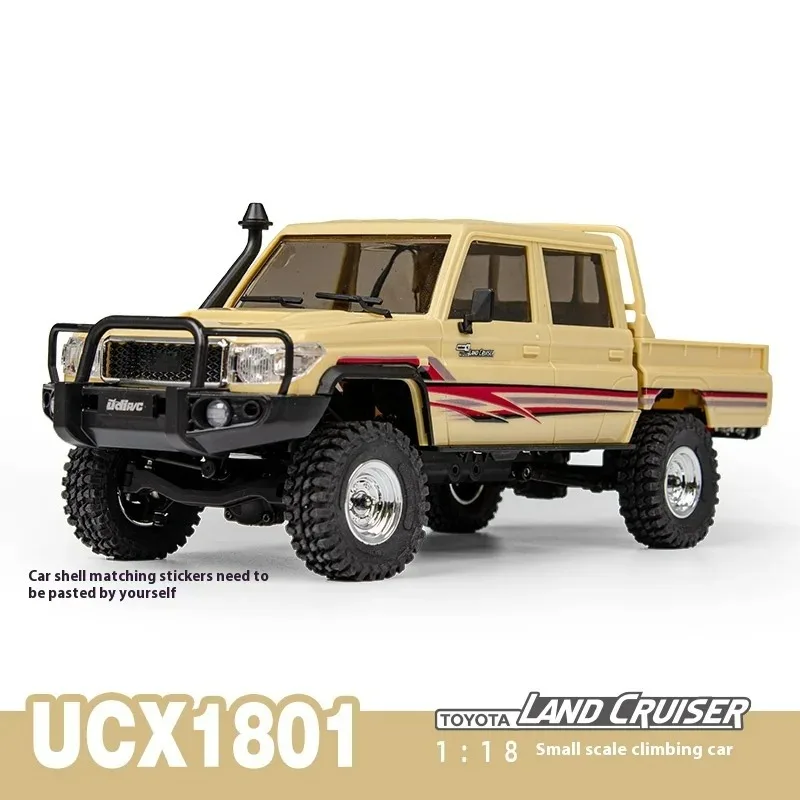 Experience the thrill of outdoor exploration with this highly detailed and durable 1:18 scale remote-controlled off-road vehicle. Designed for enthusiasts who crave high-speed action and realistic aesthetics, this vehicle boasts a tough exterior with textured surfaces inspired by real trucks. The desert yellow/beige and black color options highlight its rugged style, complemented by large, deep-tread tires with silver rims for excellent off-road traction. Its realistic grille, round fog lights, and optional stripe decals add an authentic touch. Made with top-quality plastic, metal, and carbon fiber, this vehicle is built for resilience and adventure. Whether racing across rocky terrain or performing stunts, this RC car will deliver an immersive outdoor experience that feels just like controlling a full-sized monster truck.