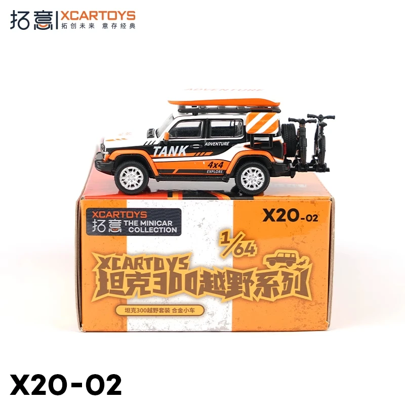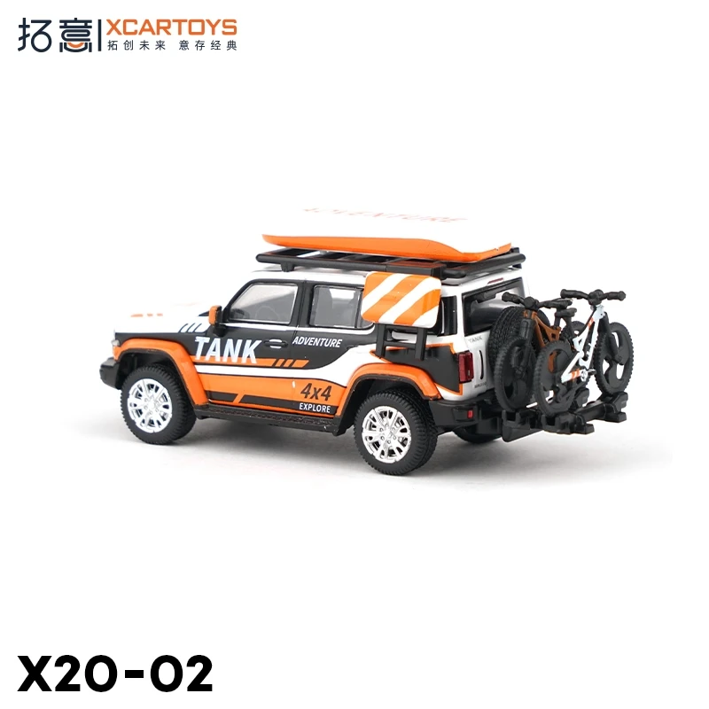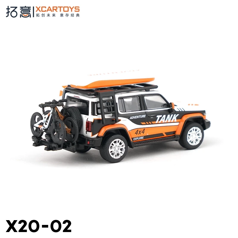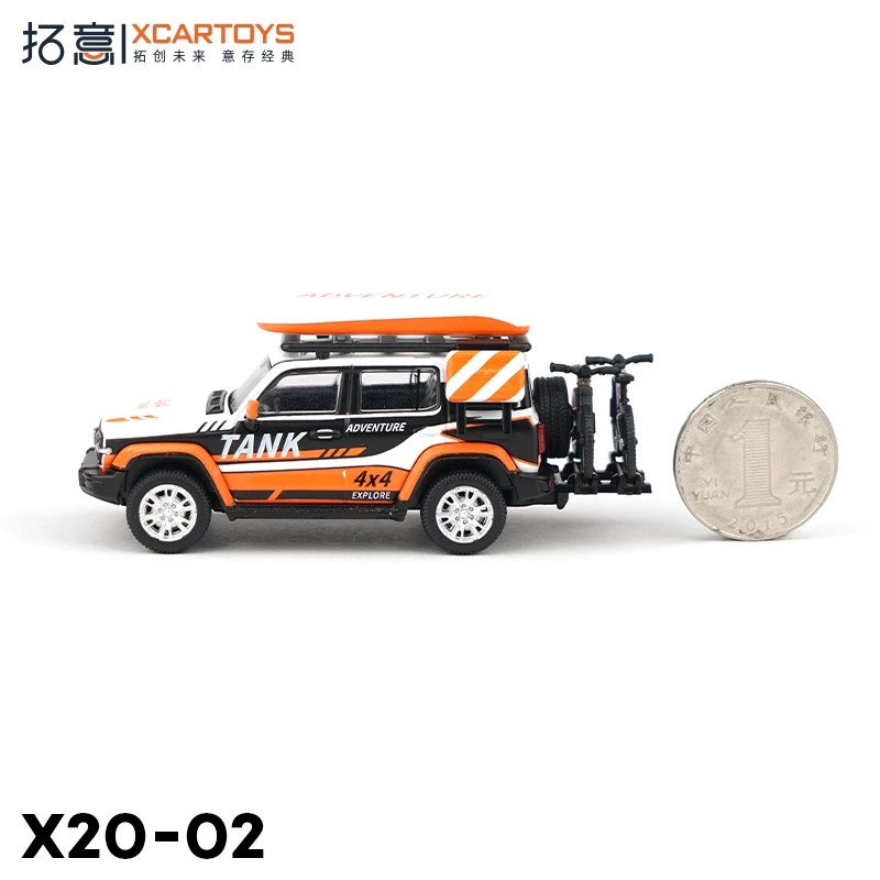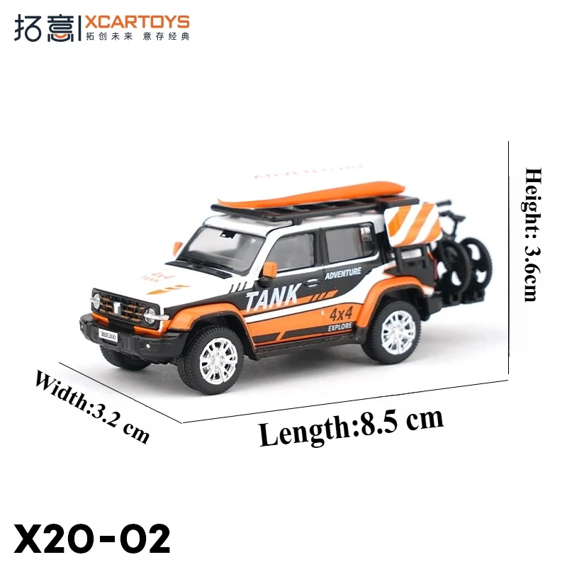 Step into the world of off-road adventure with this meticulously crafted miniature diecast model by XCARTOYS. Designed at a scale of 1:64, it captures the essence of durable, rugged vehicles built for extreme terrains. The model’s striking color, coded X20-02, features a bold white base complemented by black and vibrant orange accents, including dynamic stripes highlighting the “TANK” branding on the doors. Its boxy, utilitarian shape, detailed construction, and textured tires evoke a sense of realism and high-quality craftsmanship. This set is perfect for collectors and enthusiasts looking to add a unique, impressive piece to their collection or as a standout display item. Experience the thrill of off-road adventures, right at your fingertips, with this visually captivating miniature.