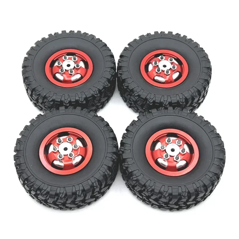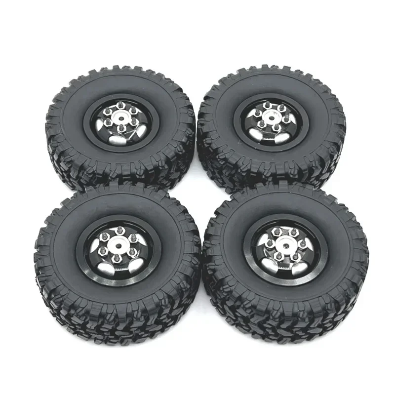 - Set includes four high-durability tires made of rubber and metal for long-lasting performance on rough terrains.