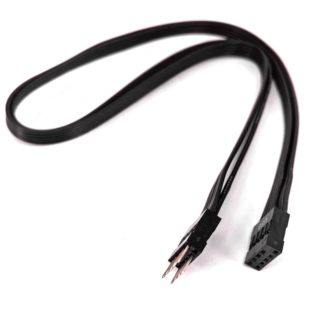 Experience seamless connectivity with this sleek black USB extension cable designed for motherboard USB headers. Measuring 50 centimeters, it offers a reliable and convenient way to extend internal USB connections, making your setup more flexible and organized. Its simple yet sturdy design features a matte black finish with molded plastic connectors, emphasizing durability and a professional aesthetic. The cable’s internal wiring, composed of multiple 24AWG wires, runs parallel within an insulative sheath, ensuring tidy routing and minimal interference. Perfect for internal data transfer, this extension guarantees a secure connection whenever you need additional USB ports for your components or peripherals. Trust in its premium quality to enhance your computer assembly with stability and style.