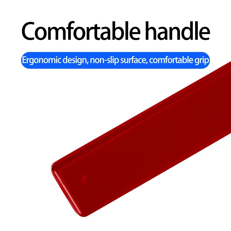 - Vibrant red lower handle adds aesthetic contrast and grip.