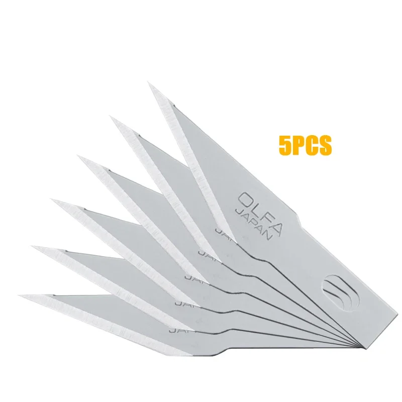 Experience a new level of cutting precision with these Premium Replacement Blades for OLFA models KB4-F/5, KB4-S/5, and KB4-R/5. Designed for reliability and performance, each blade is expertly crafted from high-quality alloy steel, ensuring sharpness and durability for all your crafting projects. Their sleek metallic finish and polished geometric edges allow for clean, exact cuts, making them ideal for various applications including DIY tasks, carving, and intricate crafting. The pack contains five blades, accommodating different project needs while maintaining high performance. Take your creativity to the next level with tools you can trust, built for both professionals and passionate hobbyists.