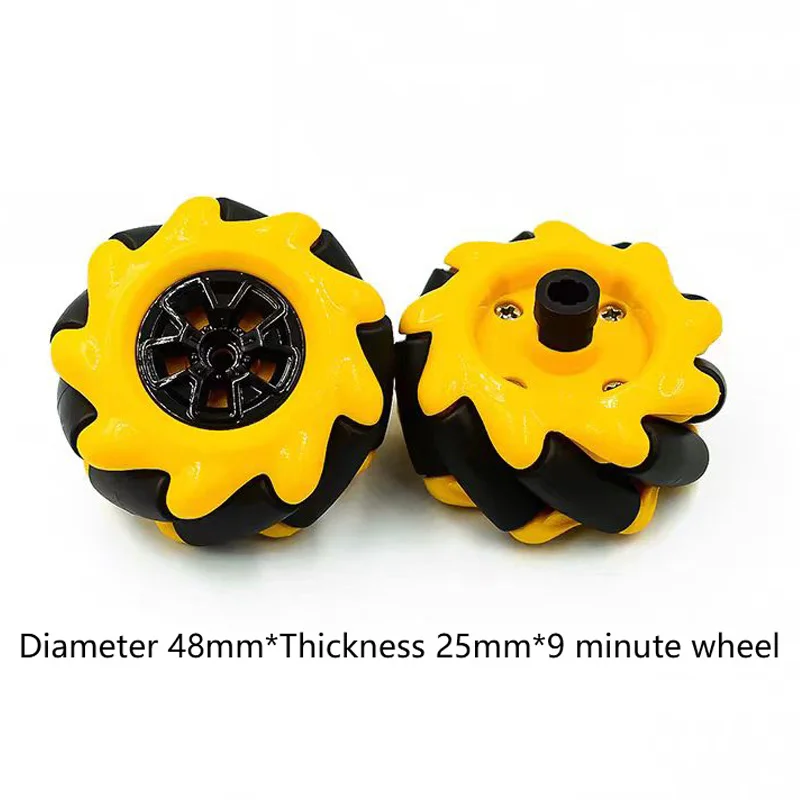 Enhance your robotics and mobile cart projects with these durable omni wheels available in four sizes: 48mm, 60mm, 80mm, and 97mm diameters, all featuring precise technical specifications. The 97mm wheel has a 4mm bore and a 12mm coupling diameter, offering robust performance with a 48mm thickness. The 60mm wheel measures 31mm thick, while the 48mm version is 25mm thick, designed for optimal stability and maneuverability. Crafted to work seamlessly with TT motors, these wheels support customization and operate within standard voltage and dissipation parameters. Their versatile design ensures reliable, high-performance movement in smart and mobile cart applications.