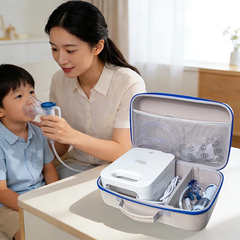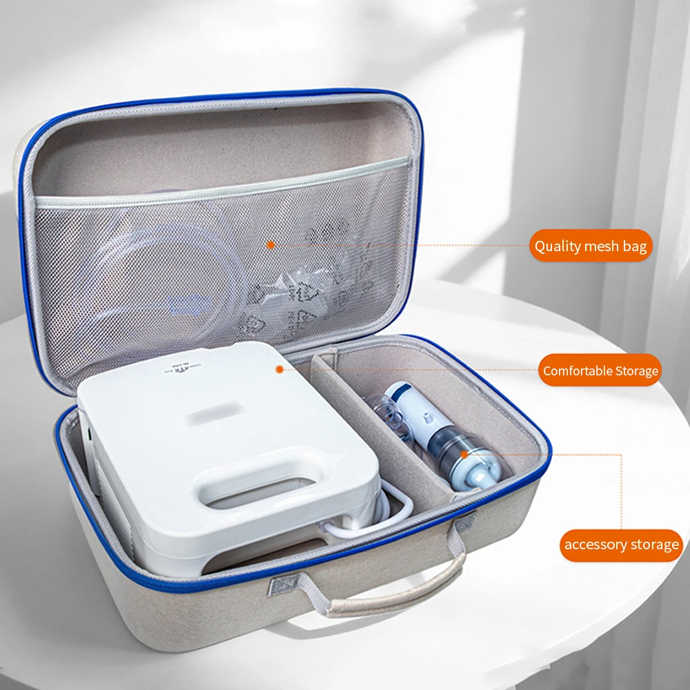 Imagine having your OMRON NE-C900 or NE-C28 nebulizer and accessories organized perfectly in a stylish, durable case. This portable storage bag combines elegance with practical features, making transportation and storage effortless. Crafted from wear-resistant Oxford cloth and pressure-resistant EVA fabric, it offers long-lasting protection against impacts and daily wear. The interior features adjustable dividers and a soft lining to keep your nebulizer and accessories securely in place. A breathable mesh pocket on the lid adds convenience for small essentials. Its sturdy handle makes it easy to carry, whether you're traveling or storing at home. Experience peace of mind knowing your nebulizer is protected and organized in this refined, professional-looking case that suits your active lifestyle.