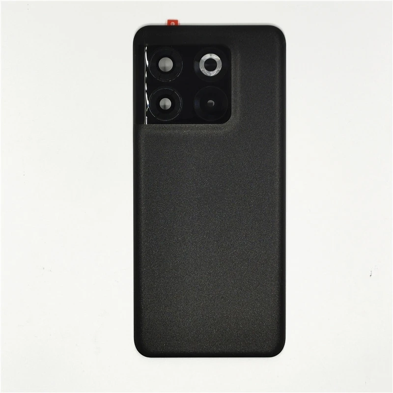 Enhance the look of your OnePlus 10T (model CPH2415) with this stylish Glass Battery Cover, available in sleek black and light translucent green. Crafted from durable glass, it features a refined bar design, seamlessly integrating a precise camera cutout that accommodates the camera lenses, adding a touch of sophistication. The glossy green cover reflects light subtly, while the matte black version offers a textured feel for understated elegance. Both covers are meticulously engineered for durability and aesthetic appeal, ensuring your device stands out. Small red installation tabs provide added convenience, making the upgrade smooth and effortless.