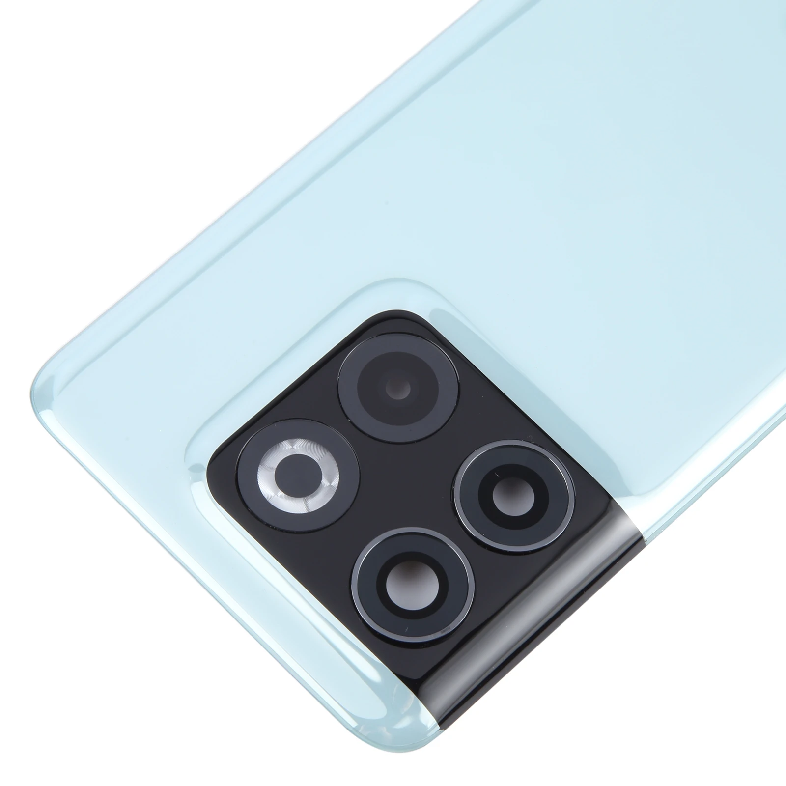 Imagine restoring your OnePlus 10T to its original sleek look with this high-quality replacement back cover. Designed to perfectly fit your device, it features a glossy finish that adds a polished touch while providing durable protection. The prominent camera module in the top left corner enhances the aesthetic, with four lenses arranged in a square pattern surrounded by a contrasting black zone, emphasizing your phone's advanced photography capabilities. The slightly raised, glossy camera lens cover seamlessly blends into the cover’s surface, offering both style and functionality. Whether you’re replacing a broken cover or upgrading, this cover makes it easy to revive the elegant, minimalist design of your device. It’s a perfect blend of aesthetic appeal and practical protection.