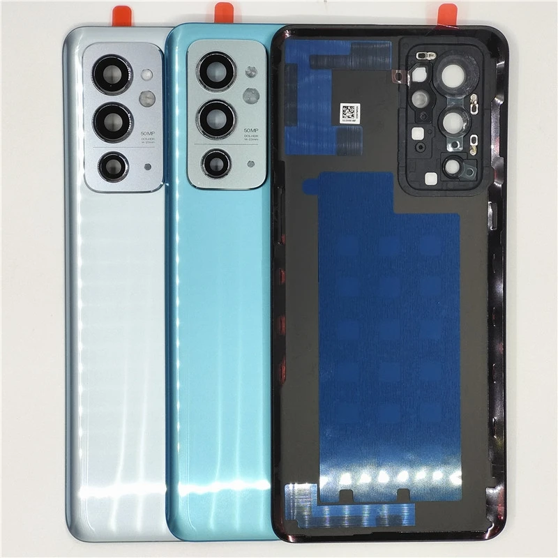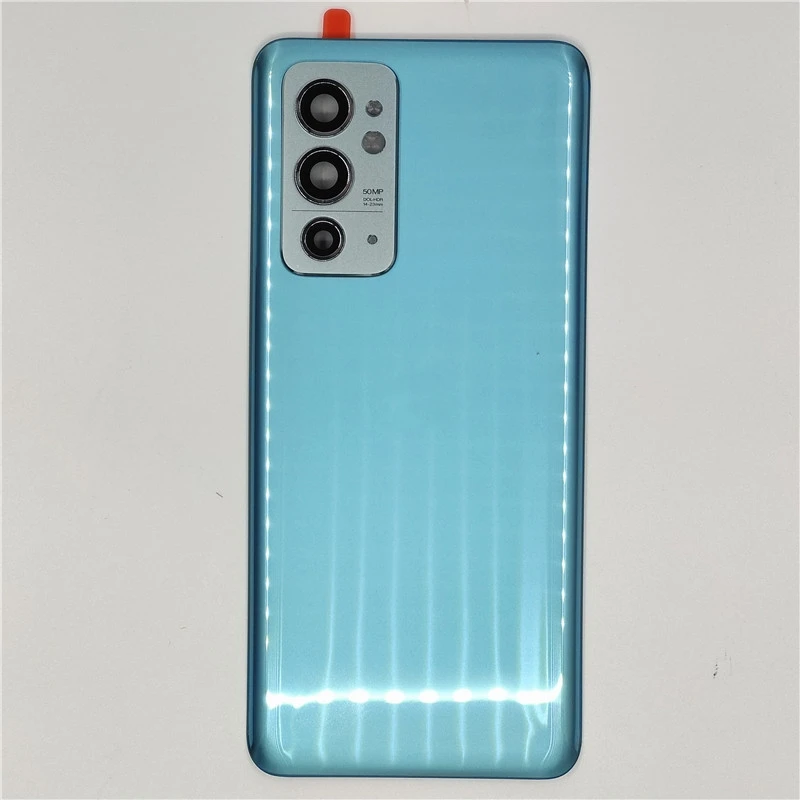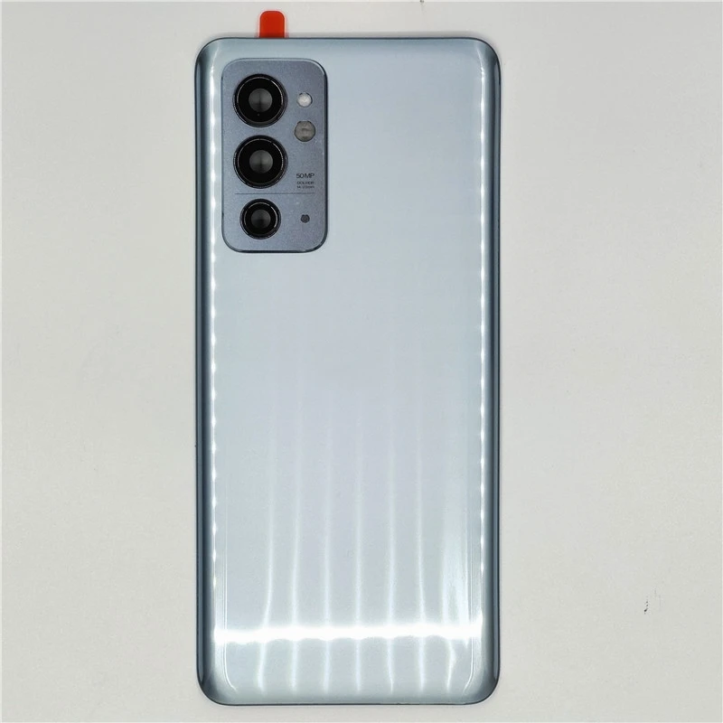 Transform your OnePlus 9RT smartphone with this exquisite glass back door lid. Choose from three stunning colors: light silver, vibrant sky blue, and sophisticated matte black. Each panel is crafted from high-quality glass, ensuring not just aesthetic appeal but also a premium feel in your hand. With precise cutouts for the camera module and a reflective silver frame enhancing the lenses, this replacement part is designed for a seamless fit. The smooth, rounded edges allow for comfortable handling, while the subtle adhesive preparation guarantees quick and easy installation. Elevate the look of your device while safeguarding its internal components with this stylish back lid.