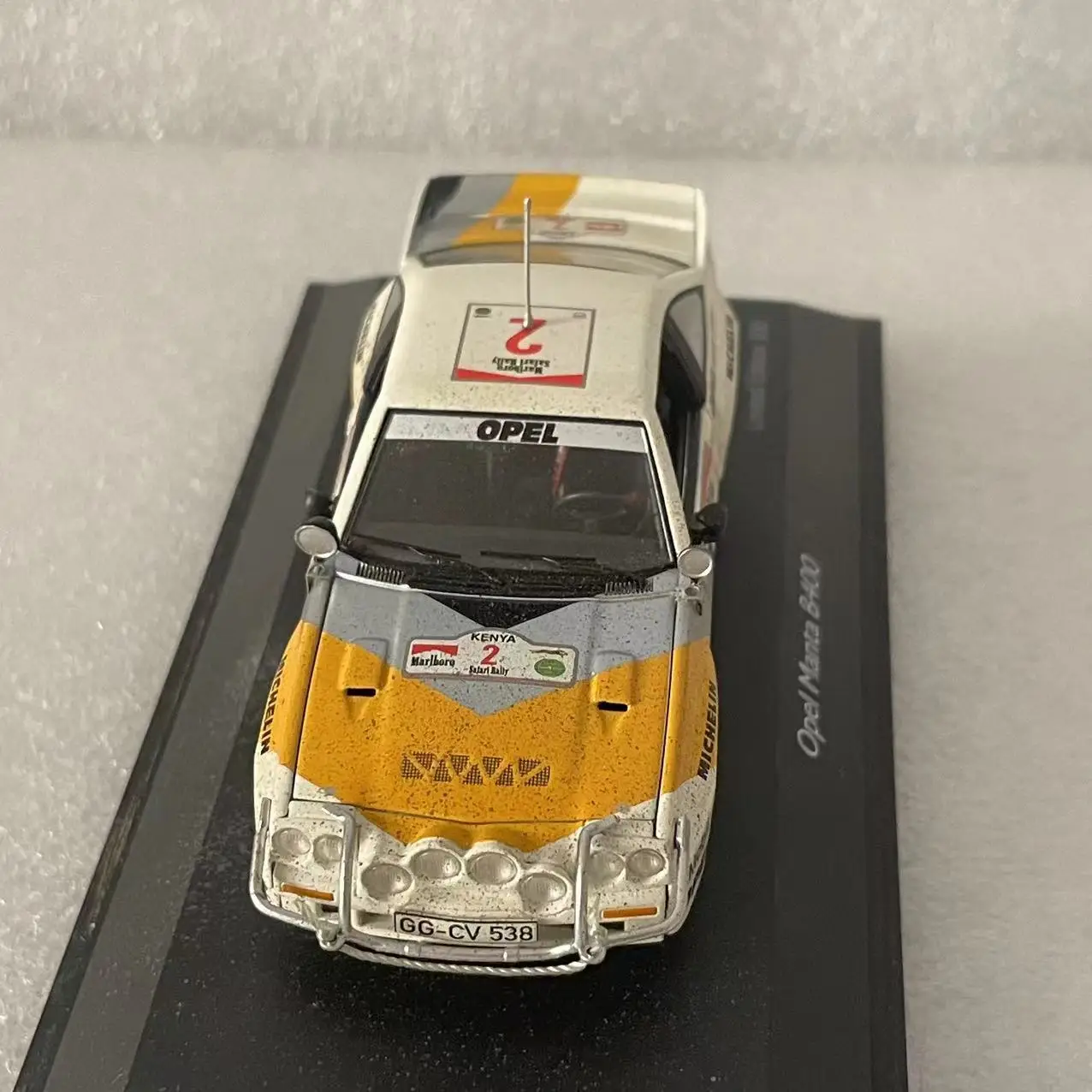 Capture the dynamic essence of racing with this 1:43 scale die-cast replica of the Opel Manta B400 “Dirt Edition Racing.” Measuring approximately 10 cm in length, this detailed metal model features realistic decals, vibrant yellow racing stripes, and surface imperfections that enhance its authentic look. It has four-wheel manual rotation and showcases clear plastic windows revealing a sporty interior with red seat belts. Designed for static display, collection, or gifts, it is suitable for enthusiasts aged 14 and above. This high-quality collectible exudes bold racing appeal, making it a perfect addition to any automotive miniature collection or display.