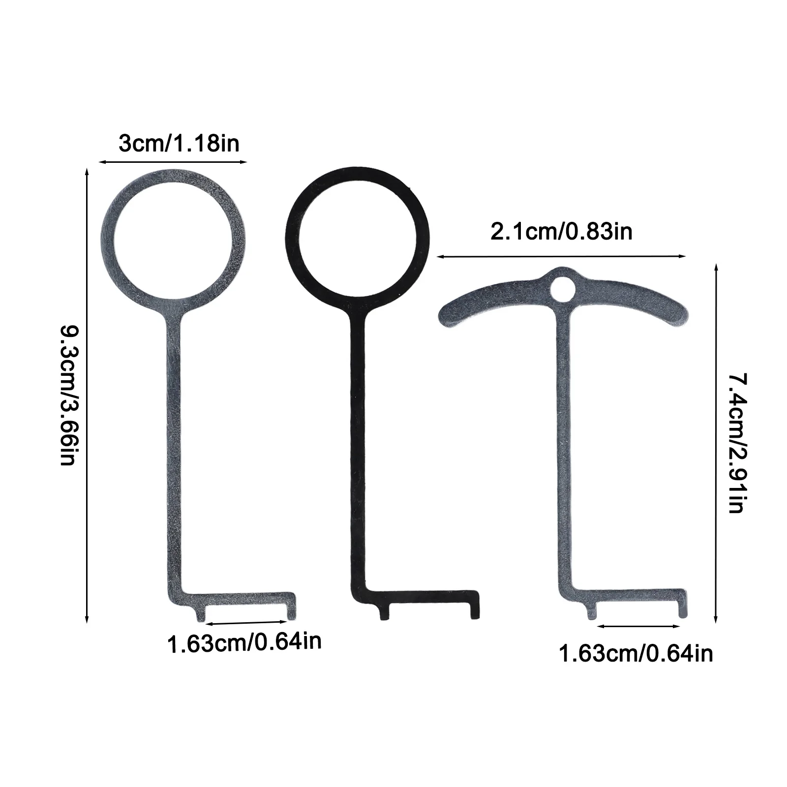 - Features a flat, elongated body with circular loops at the top for easy handling and precise engagement with timing components for accurate measurements.