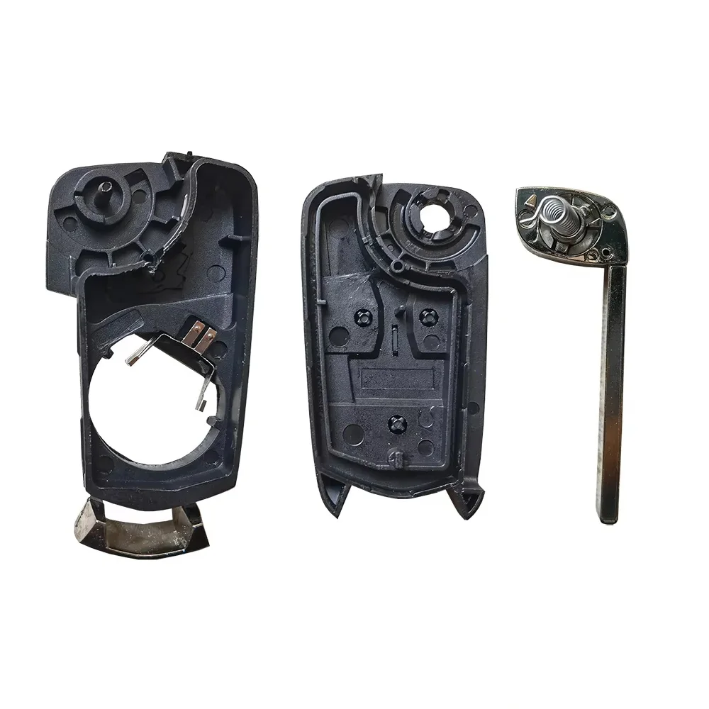 Upgrade your vehicle’s functionality and style with the flip remote car key shell case, designed for Opel and Vauxhall models, including Corsa D (2007-2014), Astra H (2004-2009), and Zafira B (2005-2013). This key shell features a sleek black plastic design with a textured finish for a secure grip, along with two user-friendly buttons for easy locking and unlocking. Its compact, rectangular shape conceals the key blade when not in use, offering ultimate portability. The OEM logo represents quality and compatibility, ensuring it fits seamlessly with your existing key setup. Enjoy a perfect blend of durability and elegance with this essential accessory.