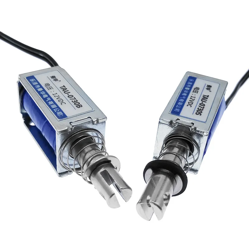 Experience the precision and reliability of this this open-frame solenoid electromagnet, crafted with a shiny, silver-colored metallic casing that showcases a modern industrial aesthetic. Its compact dimensions—57mm in length, 16mm in width, and 14mm in height—make it ideal for applications requiring precise linear movement over a 10mm stroke. The embedded blue insulated coil ensures clean organization, while the cylindrical, polished plunger adds a reflective touch of durability. Designed for intermittent use, this electromagnet operates efficiently at 12V or 24V DC with multiple models available, providing a pull force of approximately 100g and a holding force that ranges from 5N to 15N. Its stable temperature operation and CE certification guarantee dependable performance across various technical settings.