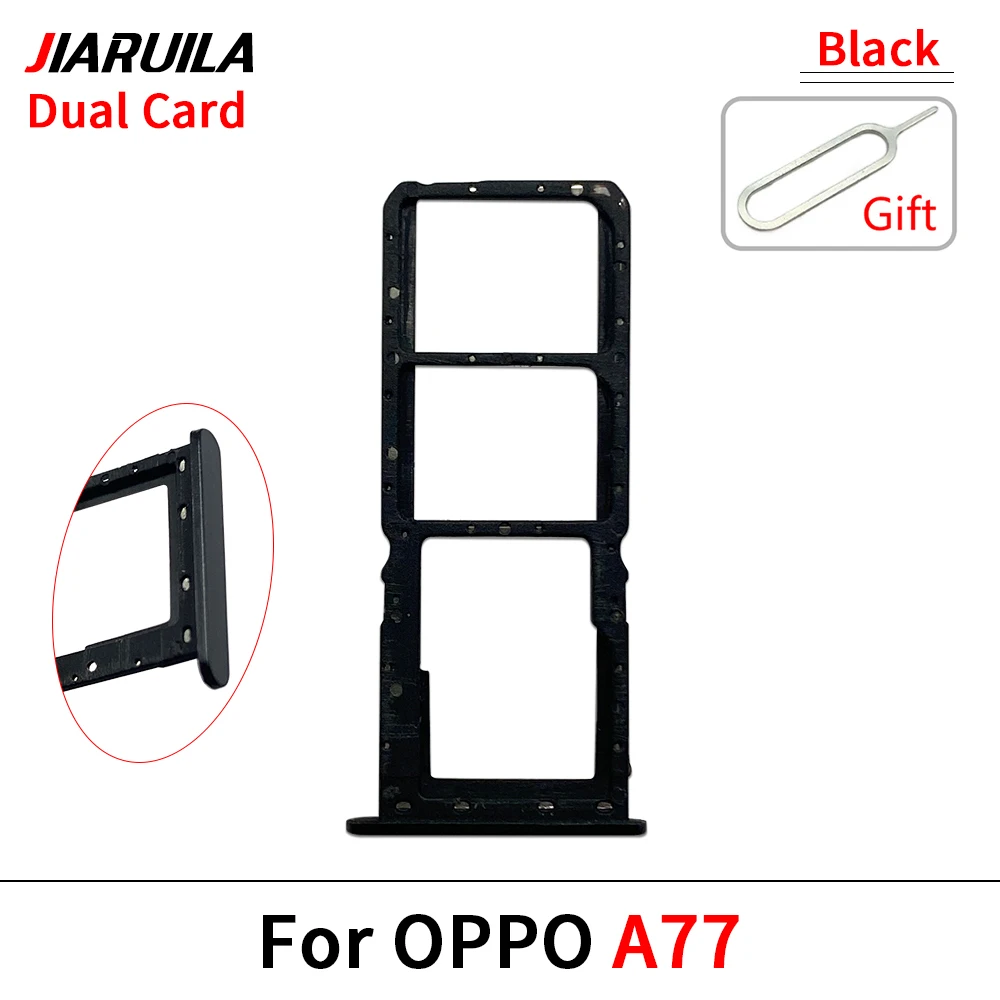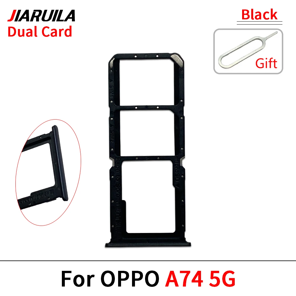 Experience seamless functionality with this durable black SIM card tray adapter designed specifically for Oppo smartphones such as the A72, A74, A77, A77s, and A78. Crafted from high-quality plastic or metal, this tray offers precise fit and ease of installation, ensuring your device maintains its sleek profile. Its minimalist, rectangular design features slightly beveled edges for a clean look, complemented by small, strategically placed holes along the perimeter for secure placement. Whether you're upgrading your device or replacing a worn-out tray, this accessory provides a reliable connection for both 4G and 5G networks. Its lightweight yet sturdy construction makes it an ideal, long-lasting component for maintaining optimal mobile performance.