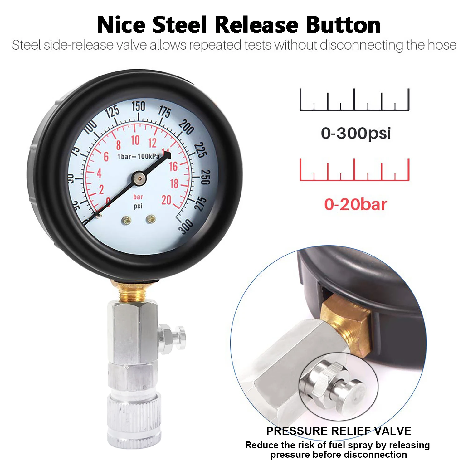 - Offers a wide measurement range from 0 to 300 PSI, suitable for most gasoline engines.