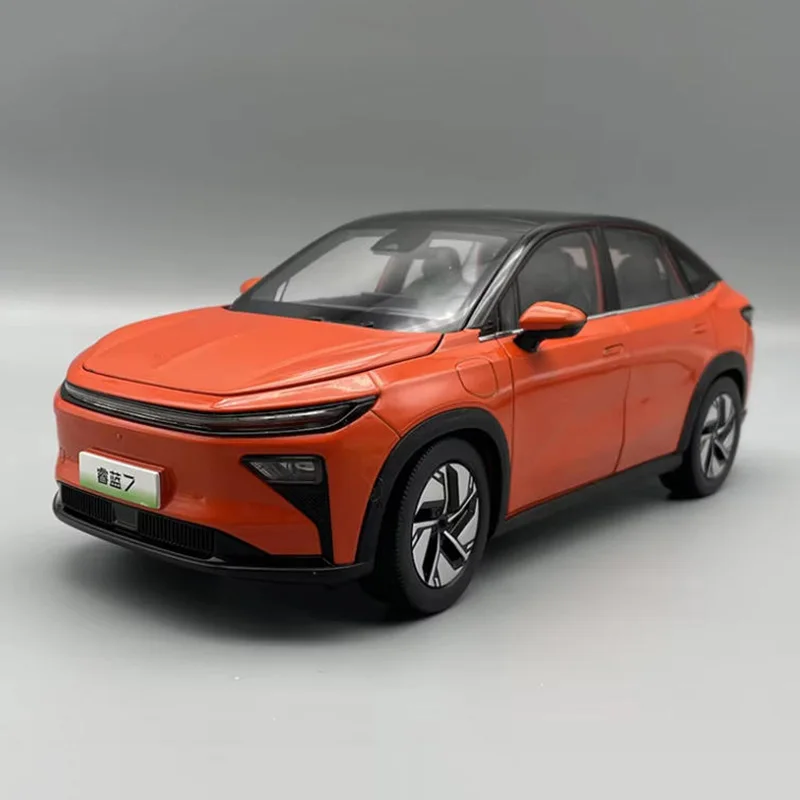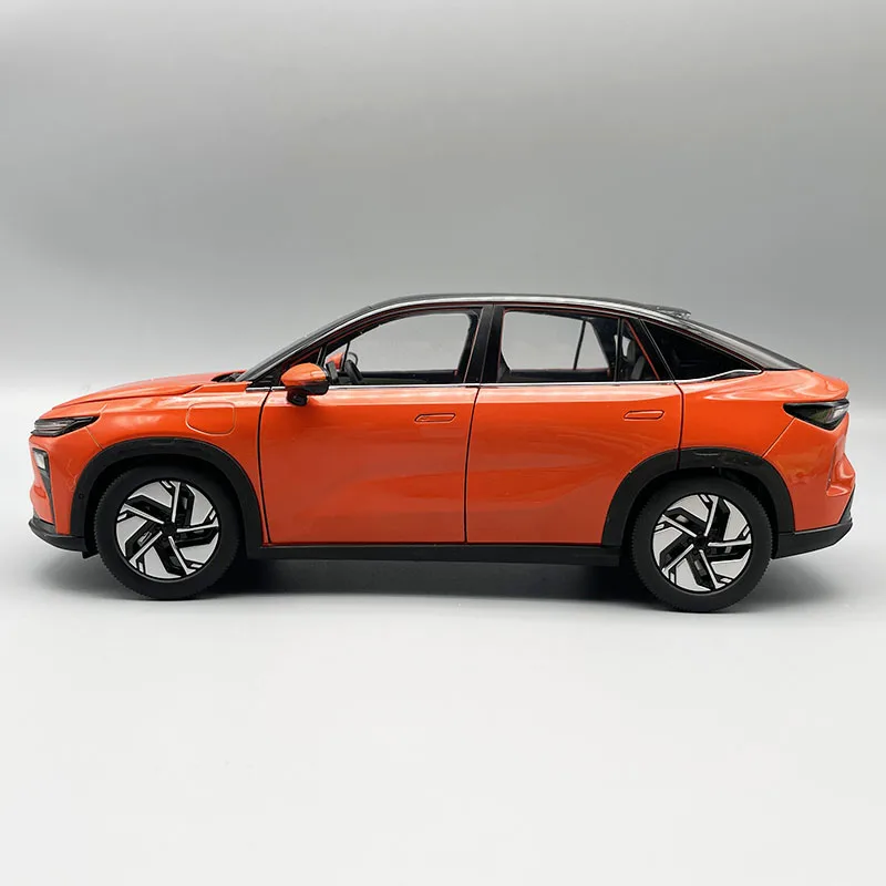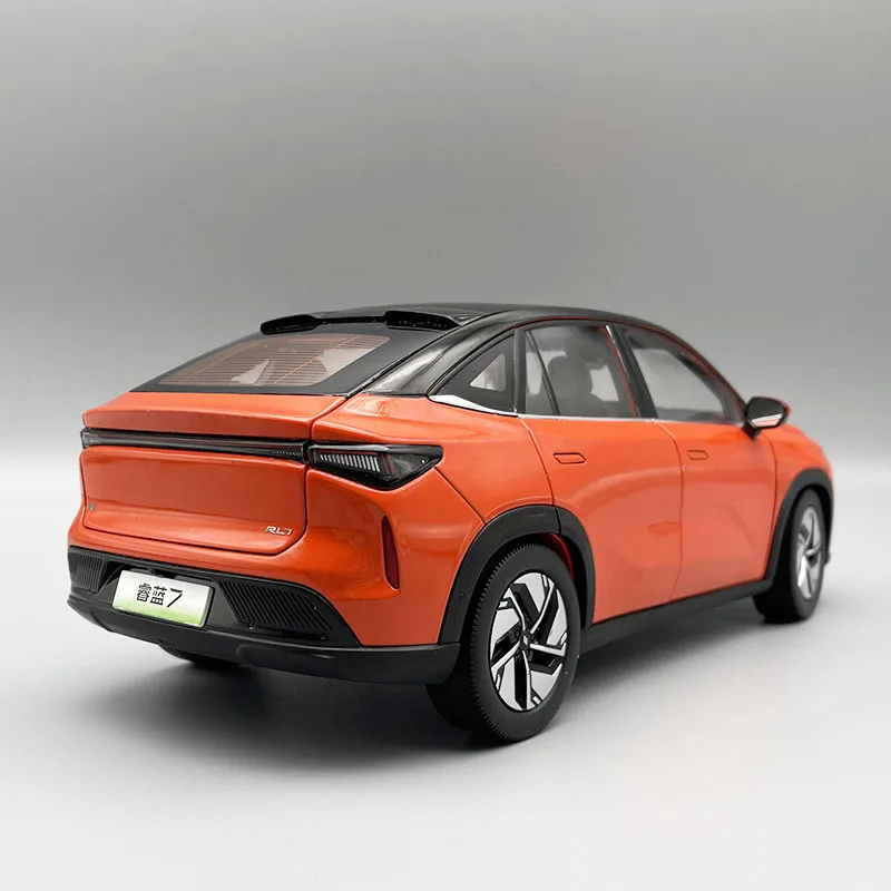 Experience the thrill of owning this beautifully crafted 1:18 scale Ruilan 7 electric SUV model, meticulously designed with a sleek, modern silhouette. Its vibrant orange finish is complemented by a contrasting black roof and trim, creating an eye-catching aesthetic. The aerodynamic body features subtle sculpted lines on the hood, a slim front grille, and a minimalistic LED headlight strip, emphasizing its contemporary design. The model’s large panoramic windshield and streamlined side mirrors add realism. With highly functional features like opening front, rear covers, and both side doors, this static display piece images the sophistication of a real off-road SUV in miniature perfection. Its sturdy alloy, ABS, and rubber construction ensures durability and authenticity.