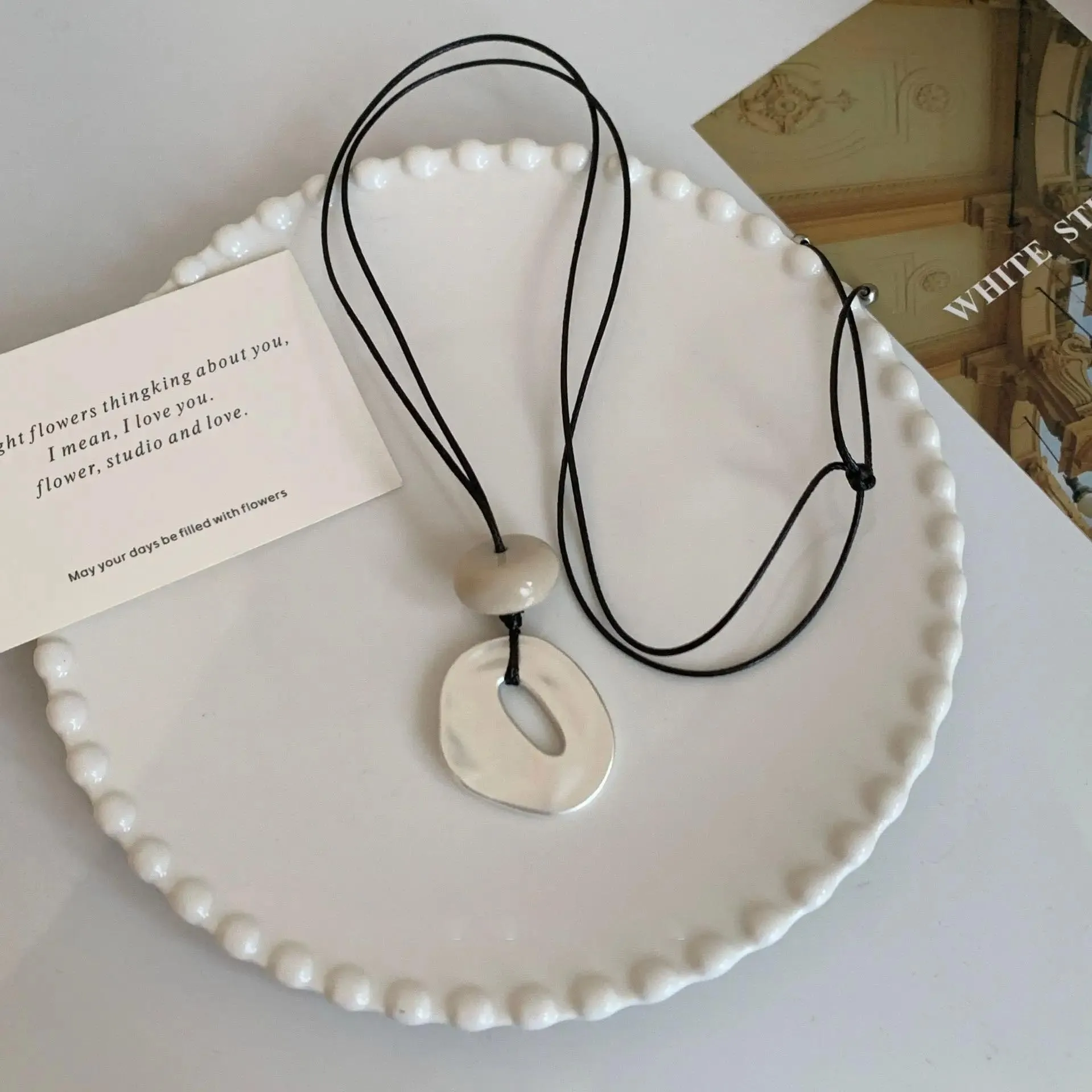 Organic Oval Pendant Necklace with Adjustable Chain