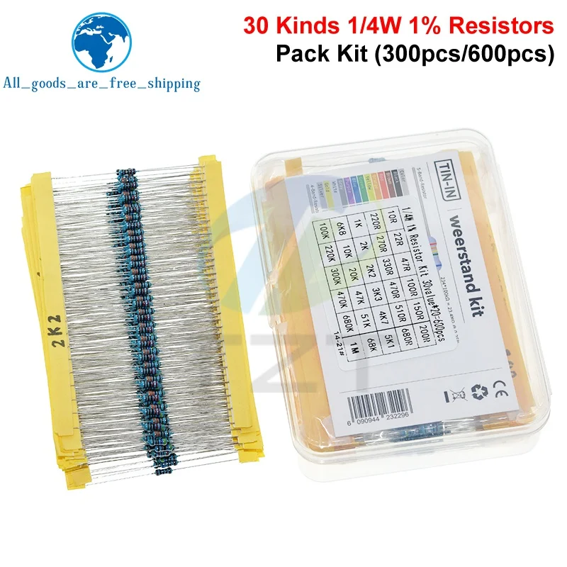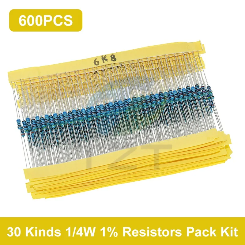 - Resistors are 1/4W, with a tight 1% tolerance for accurate and consistent performance across applications.
