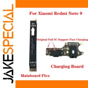 Ensure your Xiaomi Redmi Note 9 functions flawlessly with this original USB charging port dock. Crafted specifically for this model, it offers a reliable connection for charging and data transfer. The set includes a high-quality mainboard flex cable, which is flat, rectangular, and sleek with a matte black finish, marked by white text and arrow symbols for precise installation. The detailed charging board features a complex layout with multiple tiny components, connectors, and a prominent black rectangular element, supporting fast charging features with original full IC support. This part guarantees seamless integration, restoring your device’s charging capabilities and ensuring efficient operation for extended durability and performance. Perfect for professional repairs or DIY enthusiasts seeking authentic replacement parts.