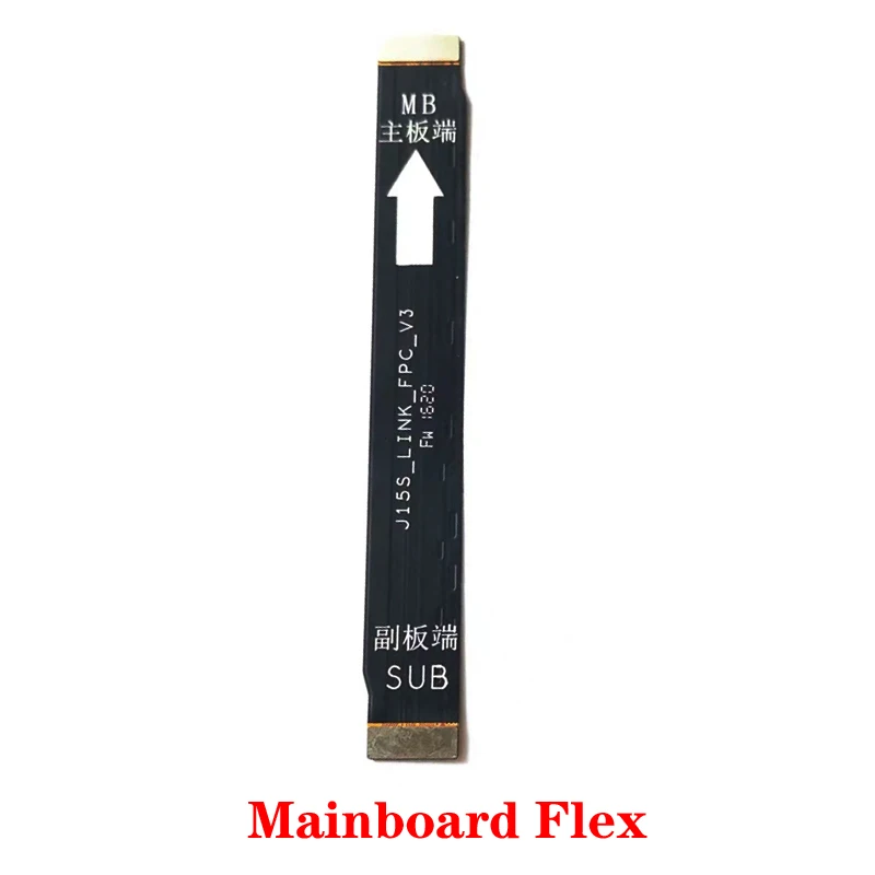 - Includes a high-quality mainboard flex cable, flat and rectangular with clearly marked white text and arrows, facilitating straightforward installation and reliable connection.