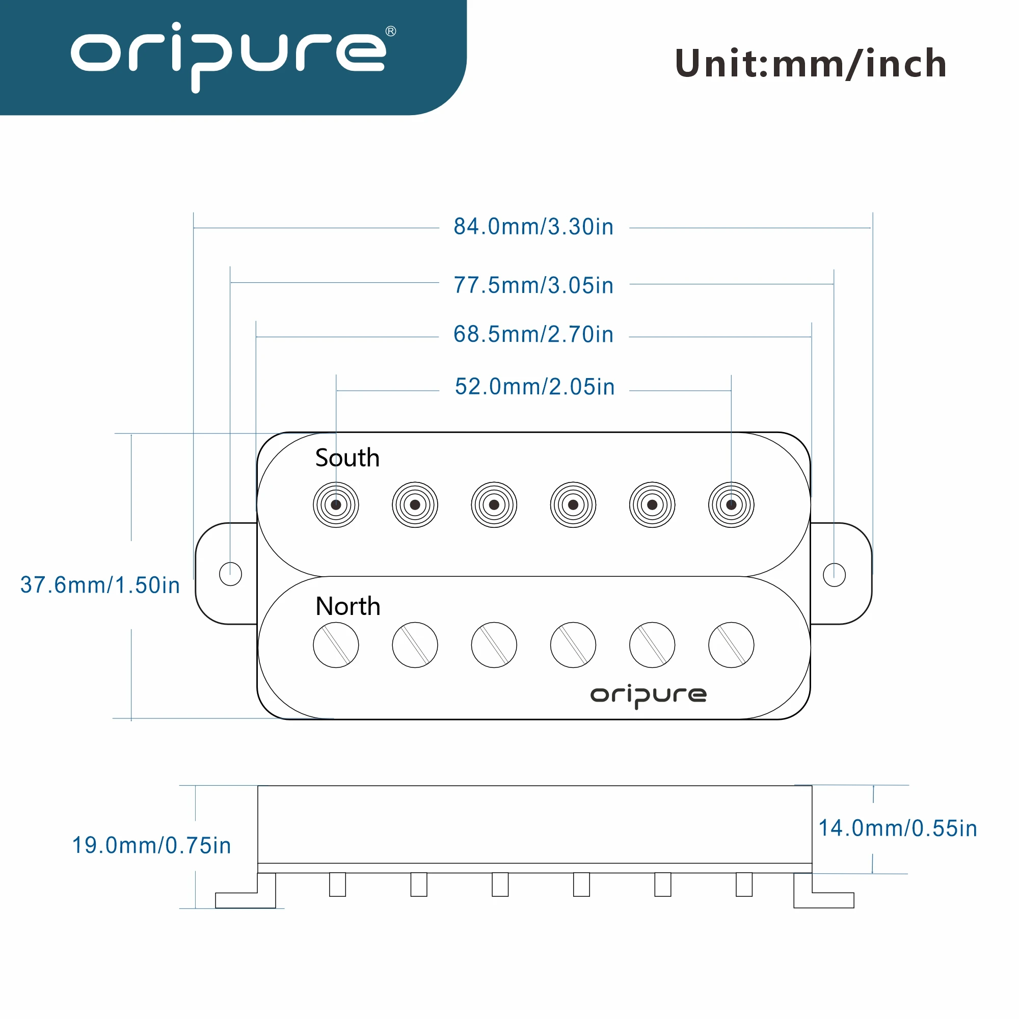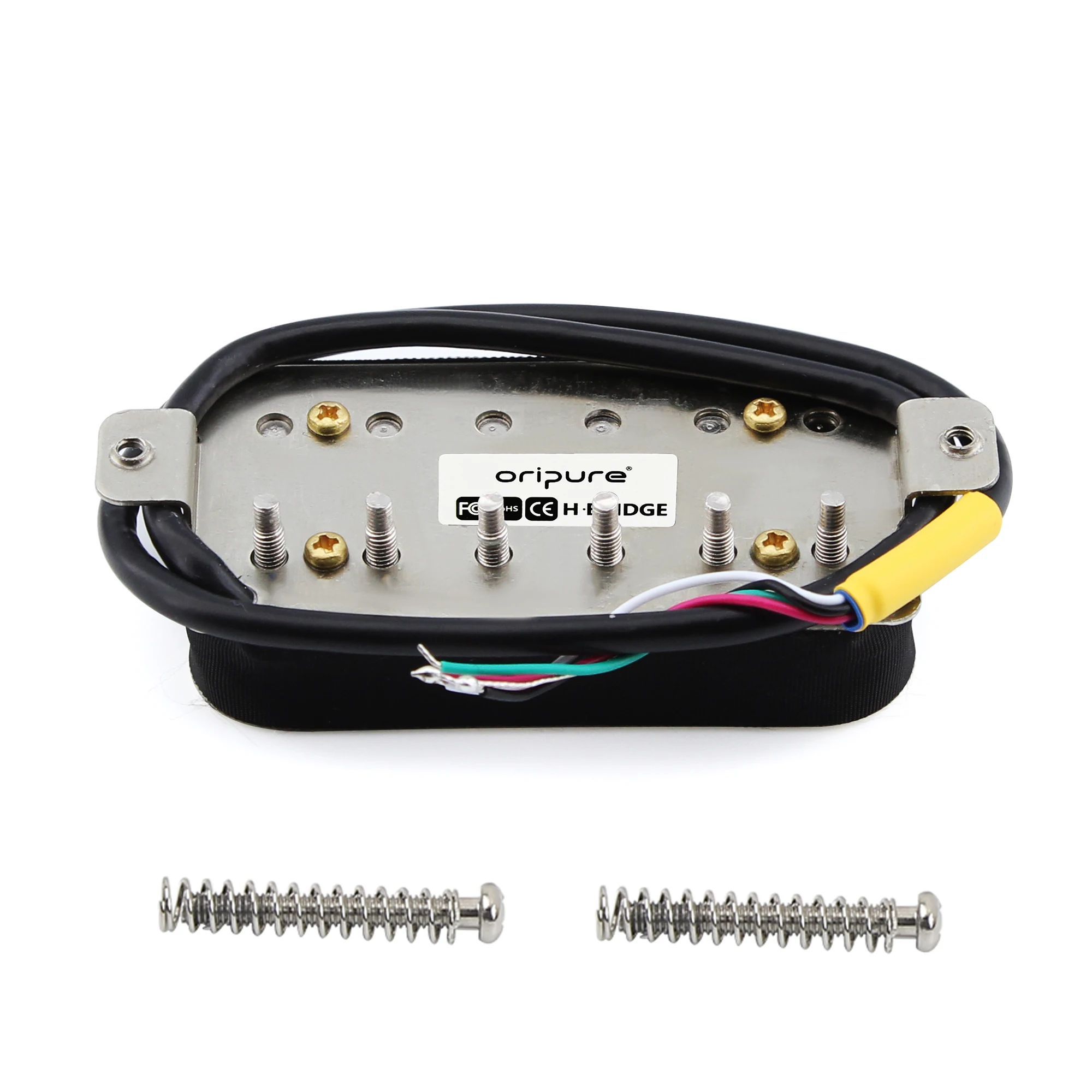 Enhance your electric guitar with the OriPure PHZ5 High Output Alnico 5 Humbucker Bridge Pickup in striking Zebra color. Featuring a 16K ohm resistance and a peak frequency of 8.6H, this double coil pickup delivers solid, powerful, and grainy tones ideal for upgrading or replacing your existing bridge pickup. Mounted on a durable copper-nickel alloy baseplate with a pole spacing of 52mm, it includes 6 non-adjustable slug and 6 adjustable screw pole pieces, with a 4-wire output for versatile wiring options. Its bold zebra pattern creates a modern, professional aesthetic that complements any guitar, offering a distinctive look and impactful sound.