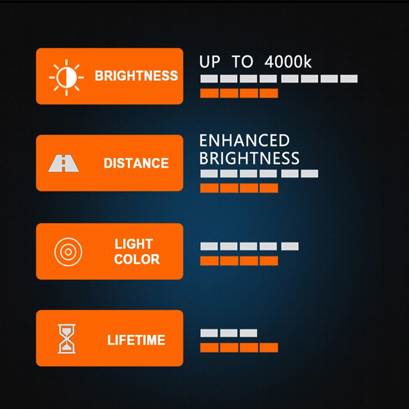 - Color temperature of 4000K provides a white, crisp illumination for better road visibility and safety.