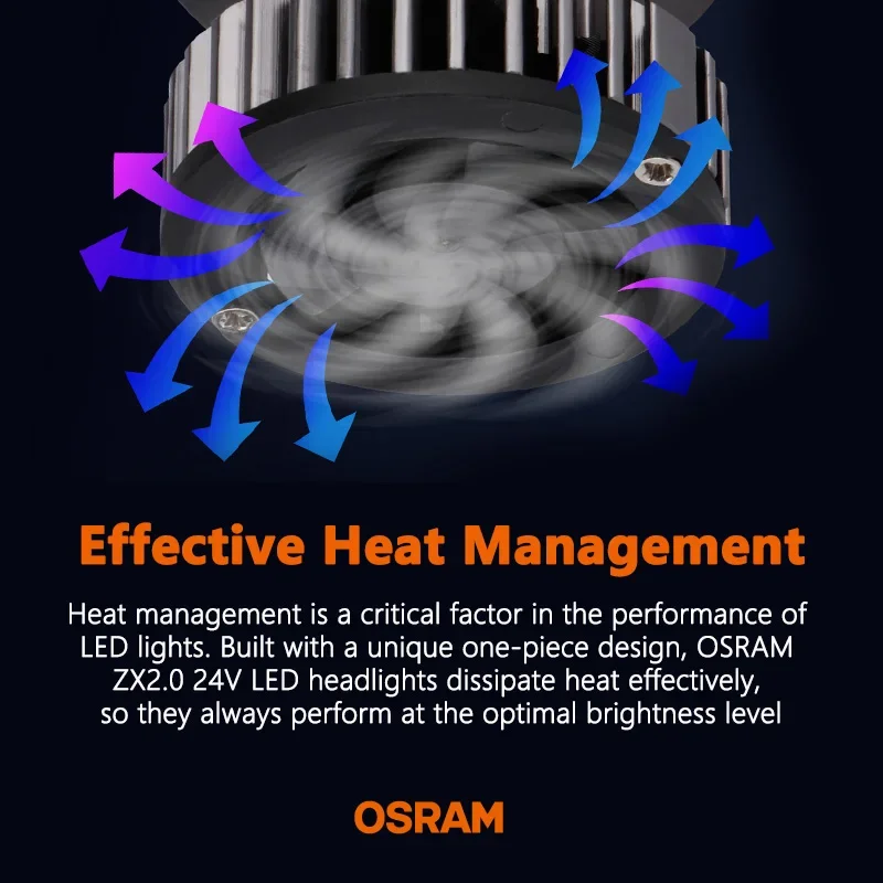 Keys features of the OSRAM 24V LED ZX2.0 Truck Headlight