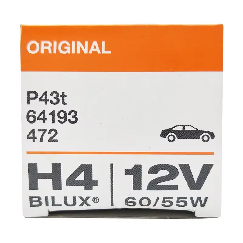 - Set of two genuine OSRAM H4 bulbs, offering high reliability and consistent performance for your vehicle’s headlight system.