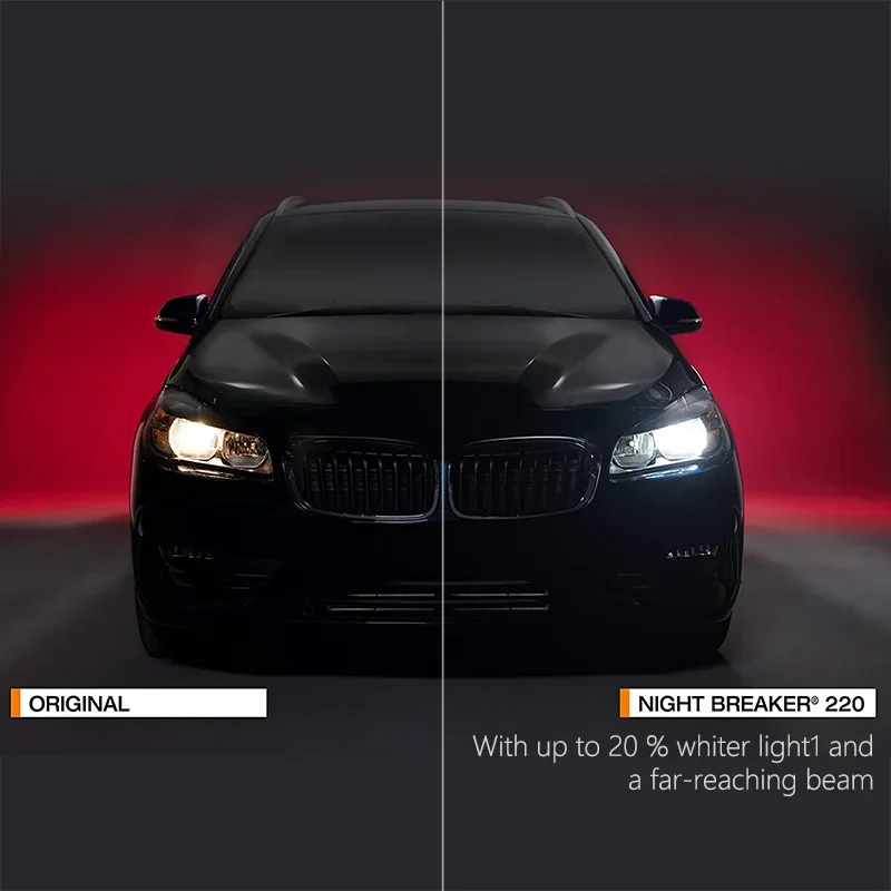- Delivers up to 220% more brightness, ensuring excellent road visibility in any conditions for safer driving at night.