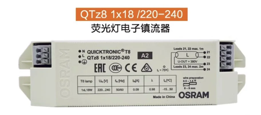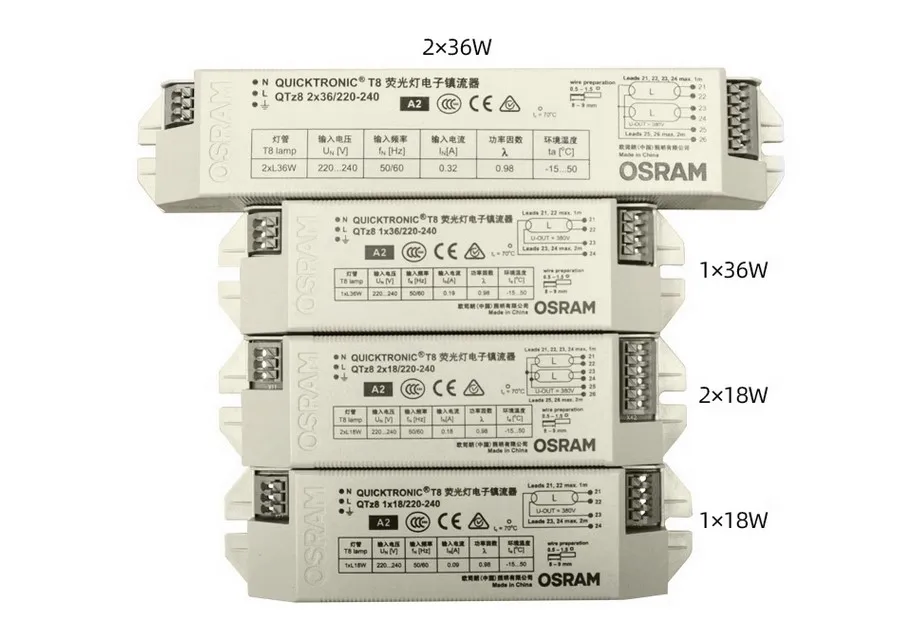 - Compatible with various T8 fluorescent lamps, particularly models QTZ8 1x18W and QTZ8 2x18W, making it a versatile choice for upgrading or replacing ballast units in different lighting setups.
