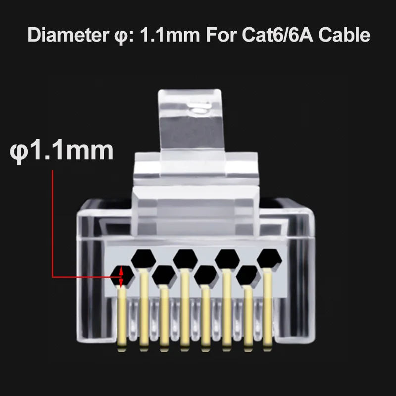 Experience reliable high-speed networking with this versatile RJ45 Ethernet connector, available in packs of 20, 50, or 100 pieces, compatible with Cat5, Cat5e, Cat6, and Cat6A cables. Featuring a pass-through modular design with 8-pin connections and gold-plated contacts, it ensures optimal data transmission and signal integrity up to 1000 Mbps. The shielded (STP) construction provides enhanced protection against interference, making it ideal for demanding network setups. Crafted for durability and high performance, these connectors are tested to pass Fluke standards, ensuring a consistent and stable connection for all your networking needs.