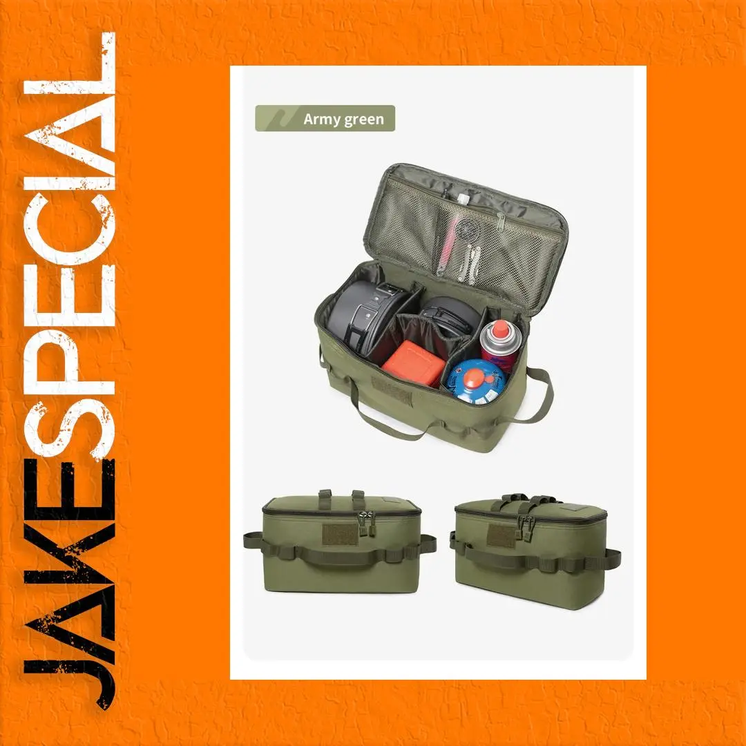 This outdoor camping gas tank storage bag is your ideal companion for all adventures. With its army green color and practical design, you can easily visualize yourself carrying this compact yet spacious foldable bag on your next camping trip. Made from high-quality 600D encrypted Oxford fabric, this bag features a smooth finish combined with pearl cotton padding for durability. Its well-organized interior contains multiple compartments and secure mesh pockets, perfect for storing camping tools, cookware, and gas canisters. This bag is not only functional but also enhances your outdoor experience while keeping your gear safely organized.