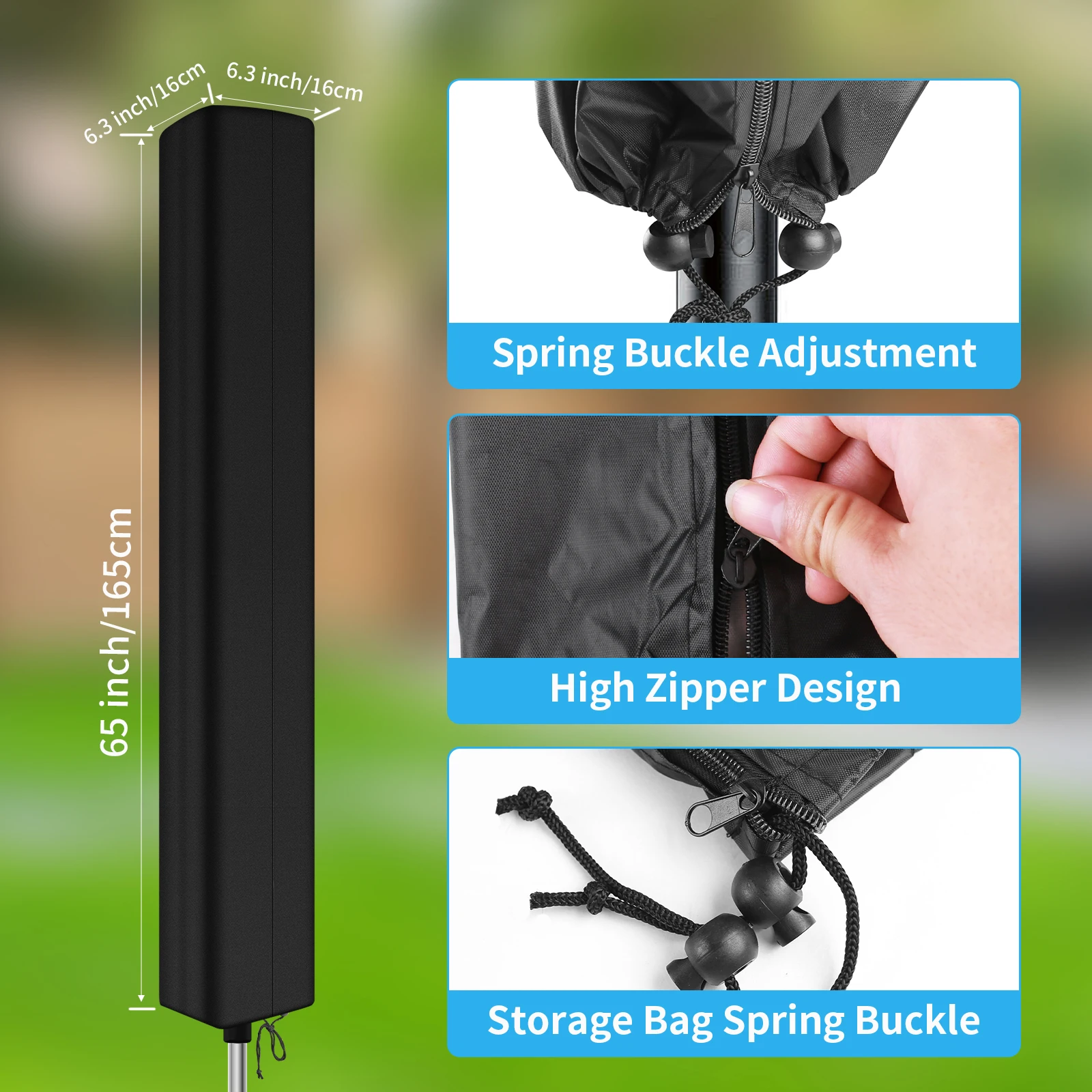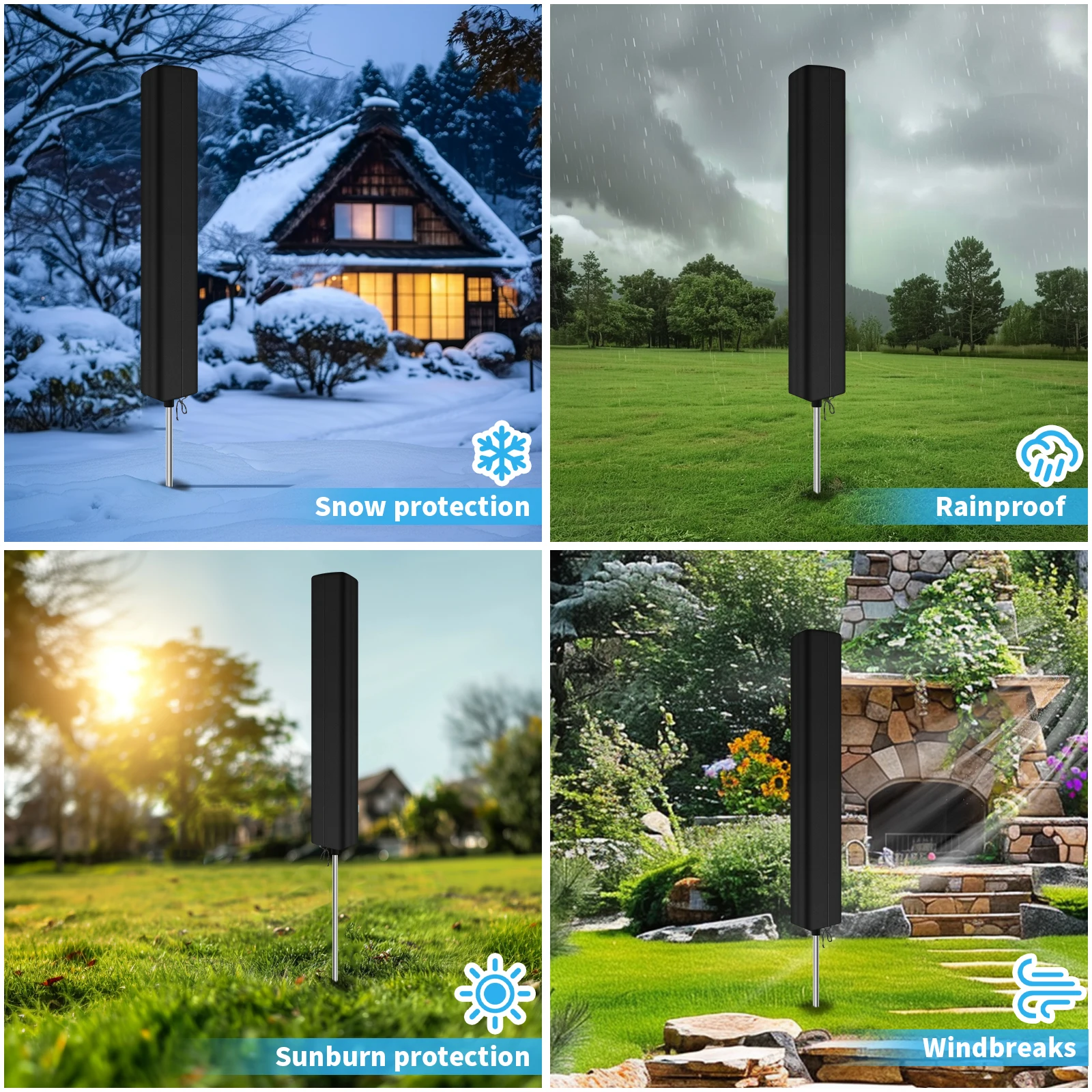 Protect your rotary outdoor umbrella clothes drying rack with this heavy-duty, waterproof cover measuring 165 x 16 x 16 cm, crafted from durable 100% polyester with an eco-friendly PU coating. Designed to withstand extreme weather, it offers reliable protection from dust, dirt, snow, rain, sun, frost, and bird droppings. The cover features a secure zip closure, a built-in tighten rope at the bottom to prevent wind blow-off, and has passed waterproof, UV resistance, and tear strength tests. Available in single or double pack options, it includes a handy storage bag for easy portability and storage, ensuring your drying rack stays clean and protected year-round.