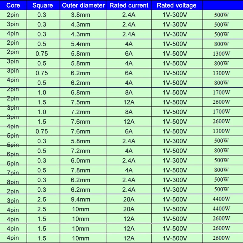 - Available in multiple pin configurations: 2Pin, 3Pin, 4Pin, 5Pin, and 6Pin, with wire gauges ranging from 0.3 to 2.5 square millimeters, fitting various appliance needs.
