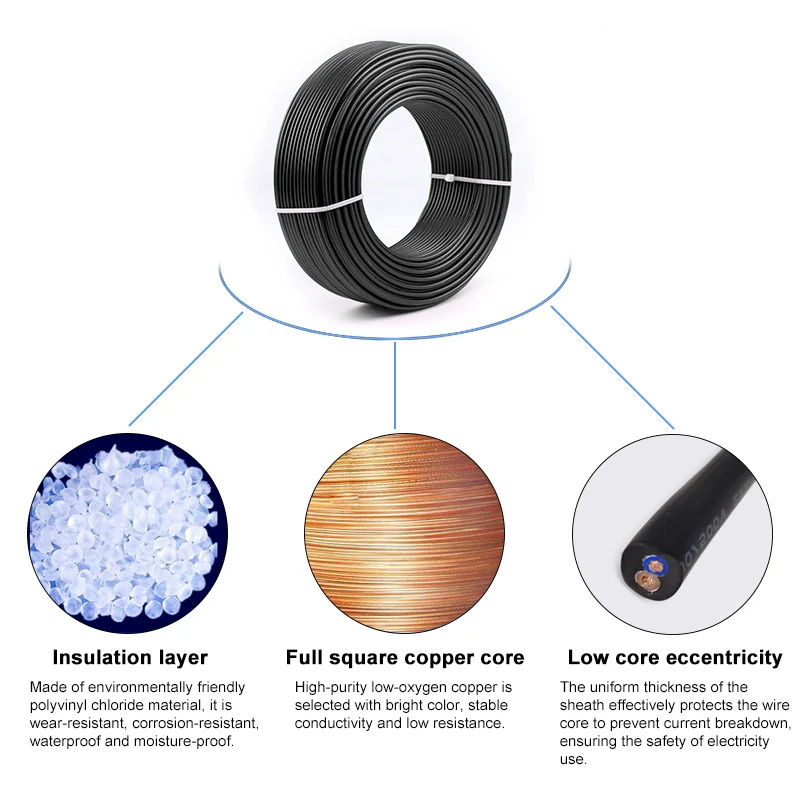 - Manufactured with a high-quality PVC insulation sheath that offers excellent protection against environmental factors and physical abrasion, ensuring longevity and safety.