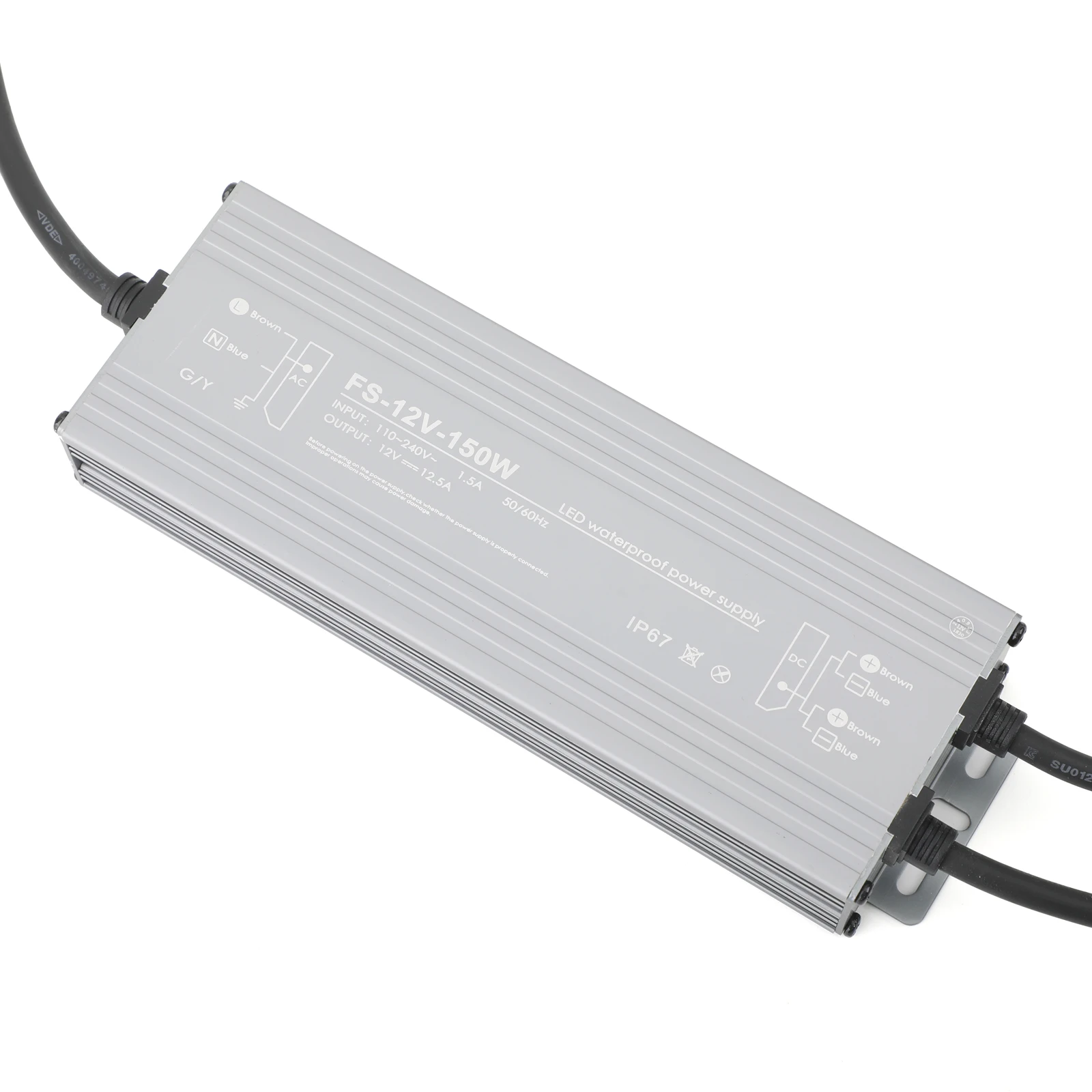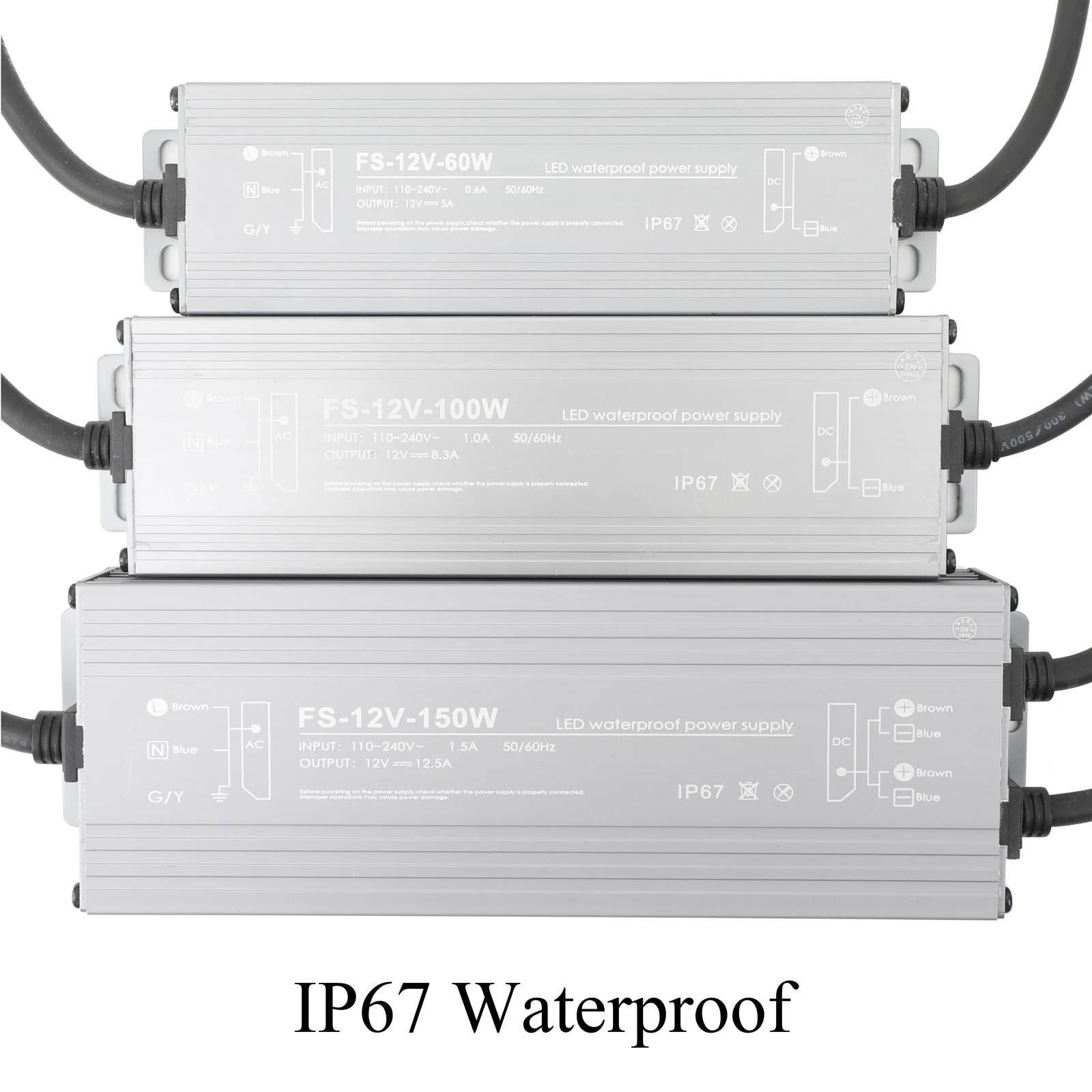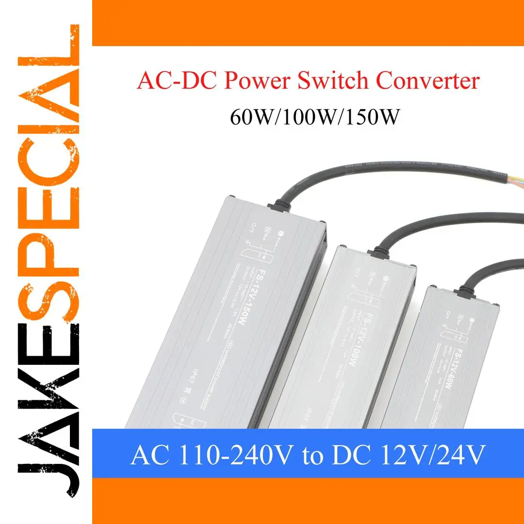 - Converts AC 110-240V to DC 12V or 24V with capacities of 60W, 100W, or 150W, ideal for various outdoor LED lighting setups.