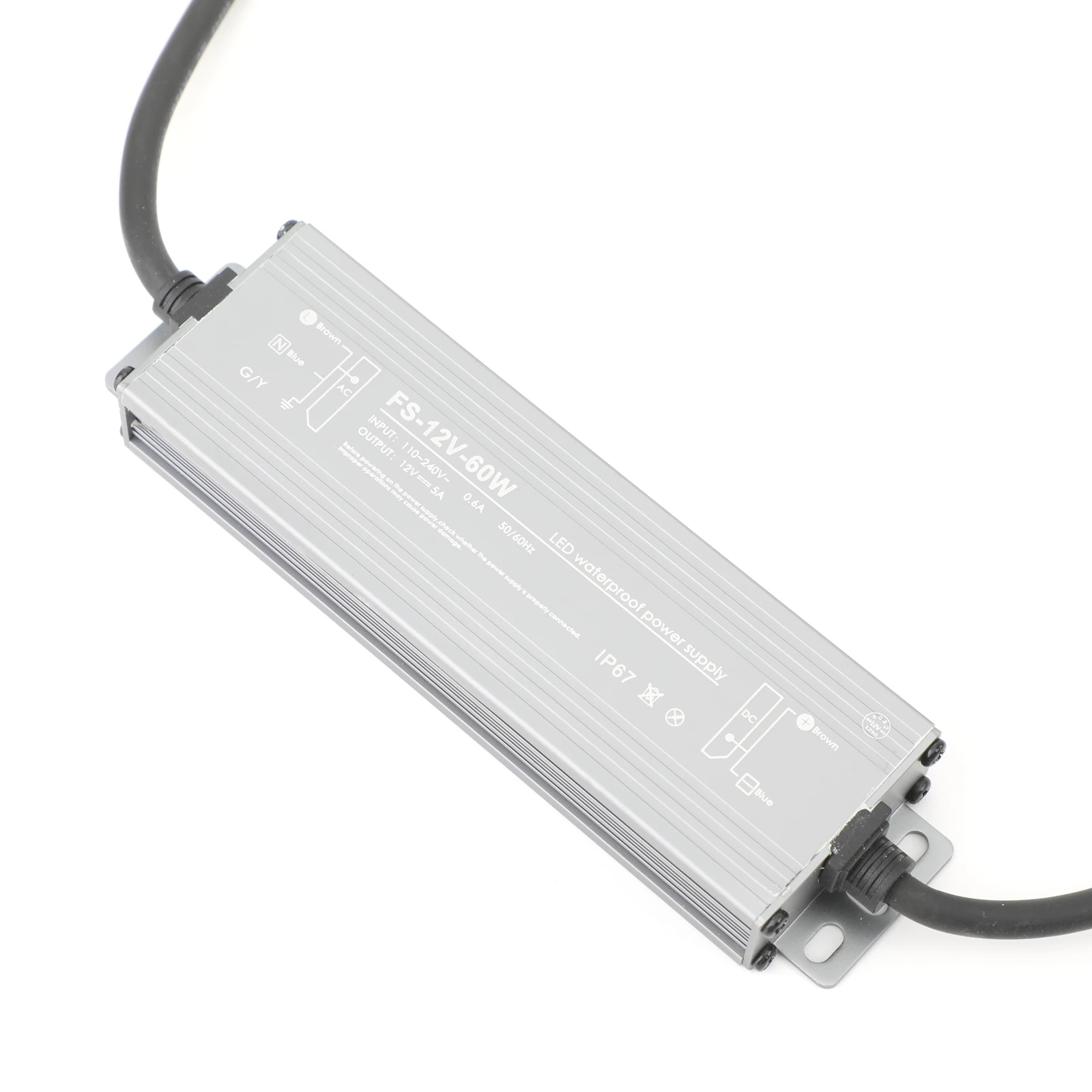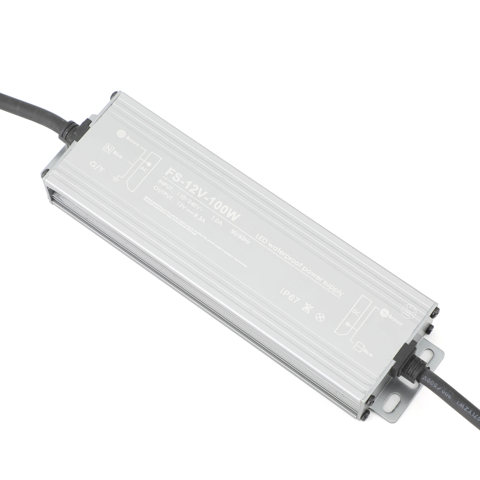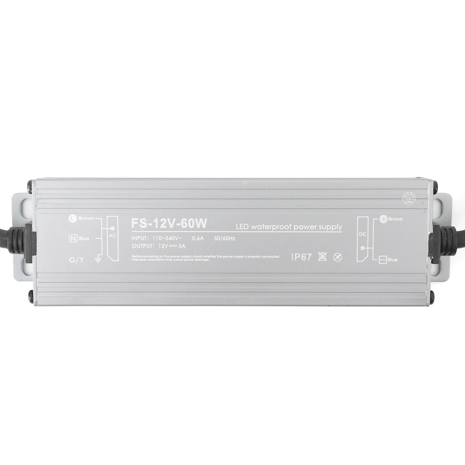 - Converts AC 110-240V to DC 12V or 24V with capacities of 60W, 100W, or 150W, ideal for various outdoor LED lighting setups.